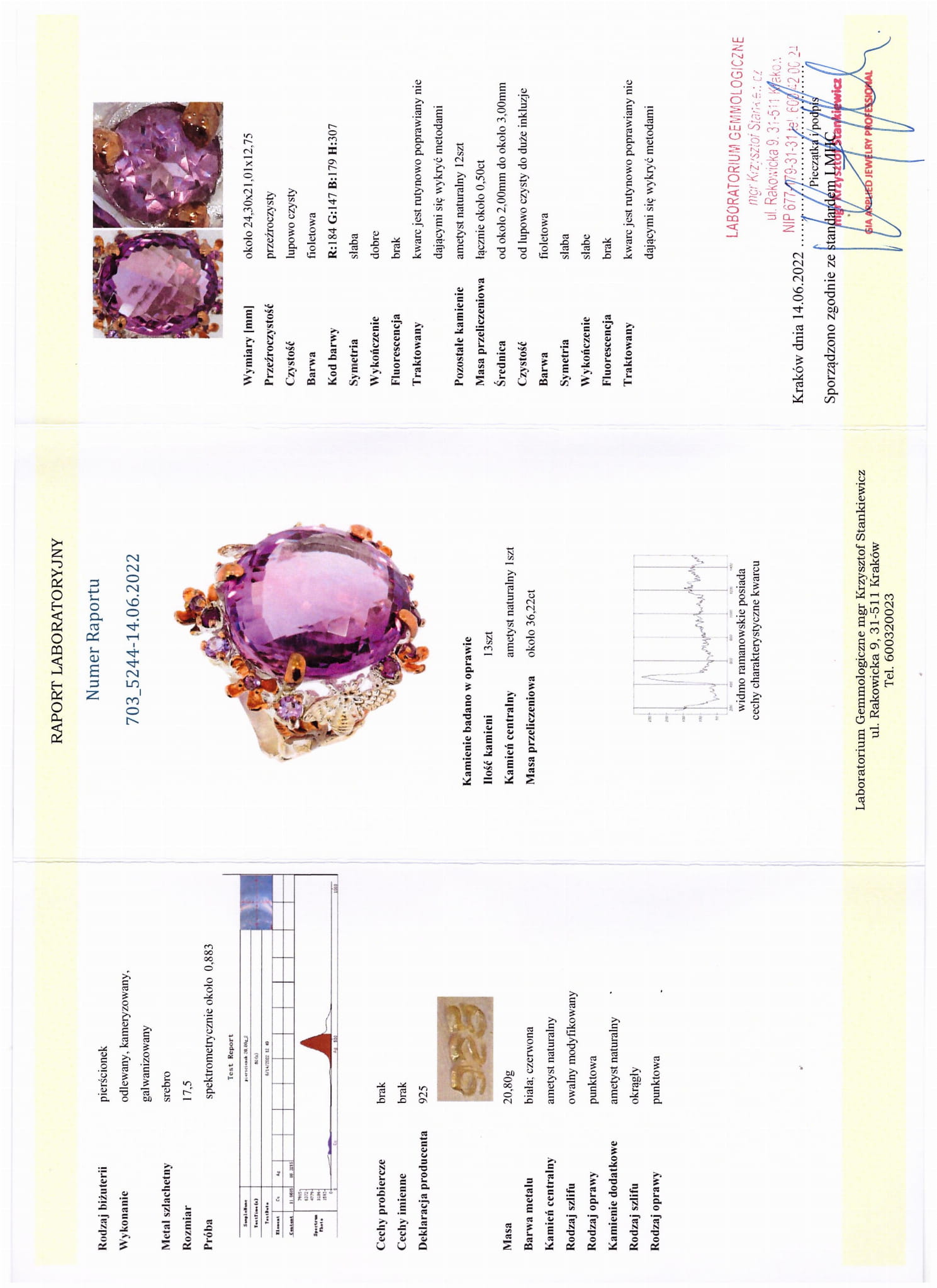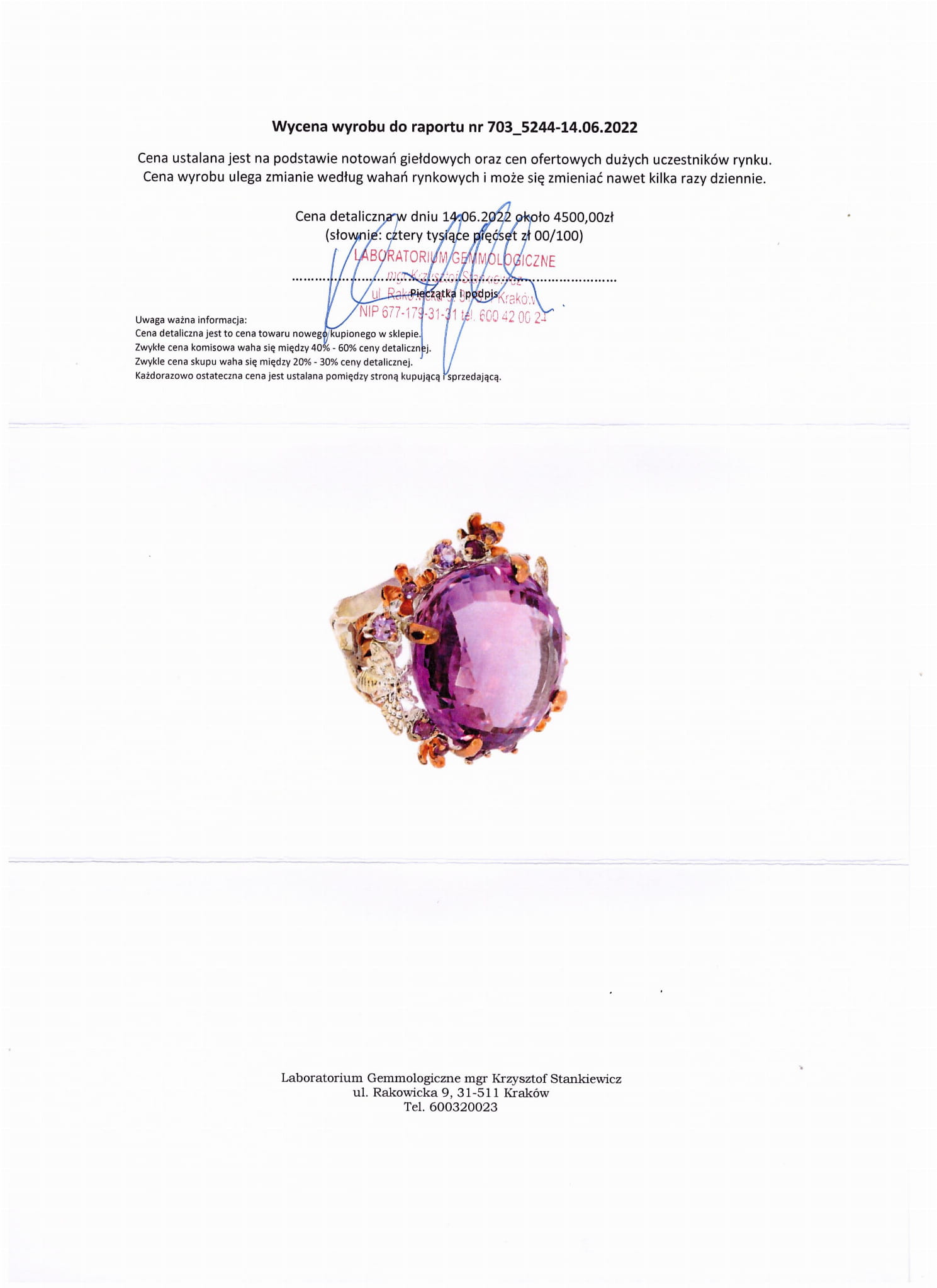 14K gold-plated pink and white gold, silver - 925 ring with natural amethyst.