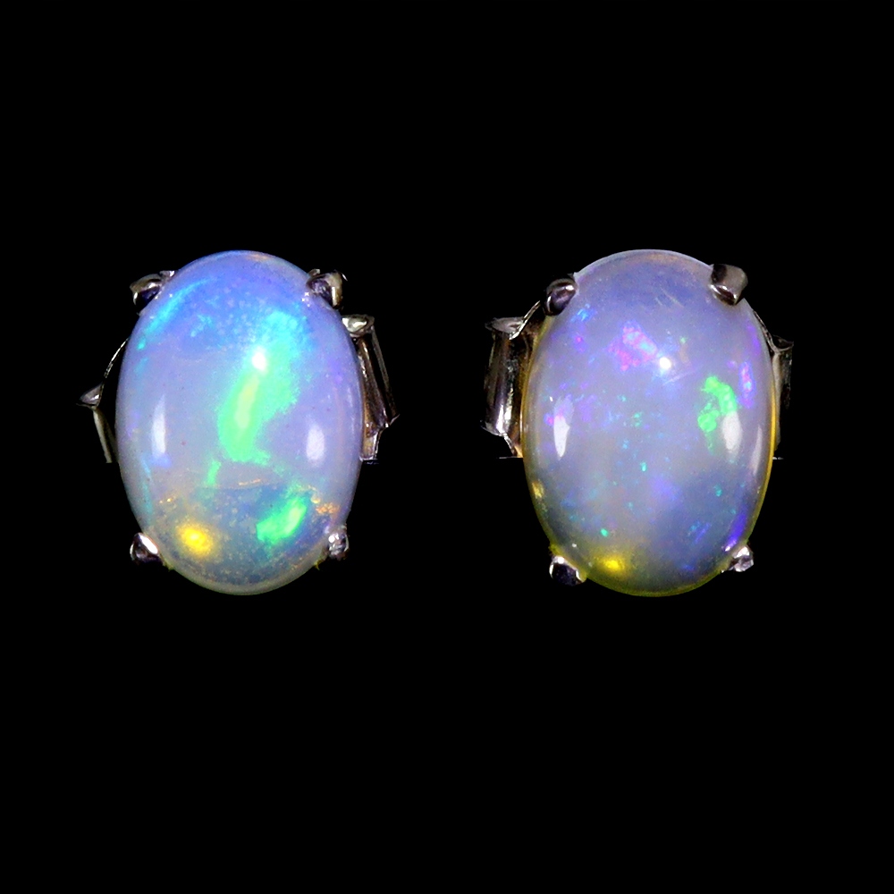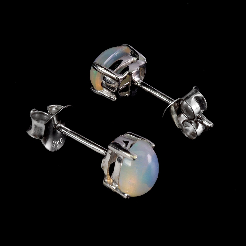Oferujemy Państwu pozłacane 14K białym złotem, srebrne -próba 925- kolczyki z naturalnymi opalami ognistymi.