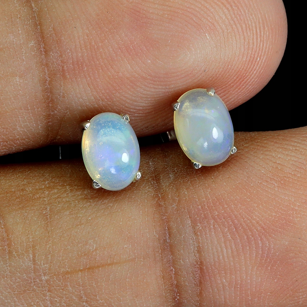 1 Piękne srebrne delikatne kolczyki 925 naturalne opale ogniste