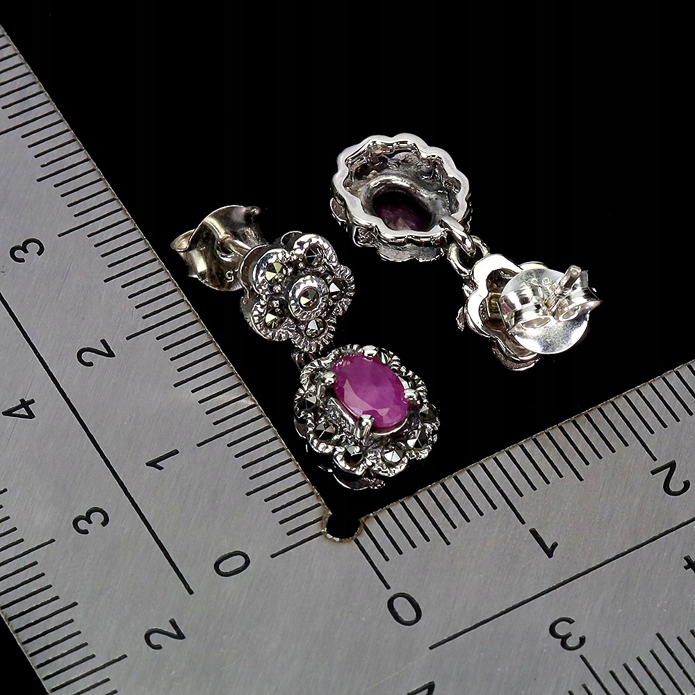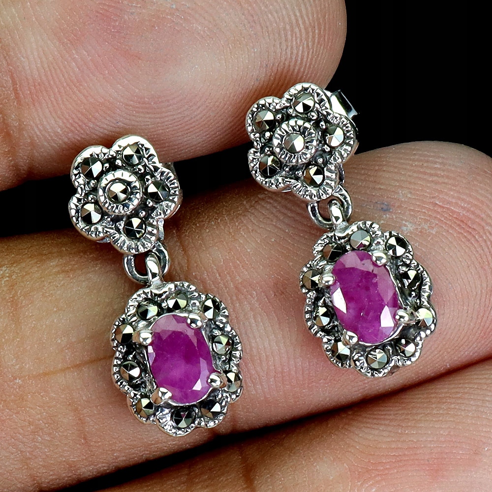 1 Srebrne eleganckie kolczyki naturalne rubiny markazyty 925