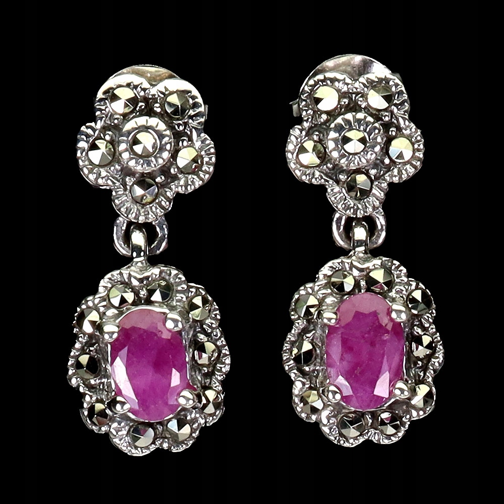 Oferujemy Państwu srebrne - próba 925- kolczyki z naturalnymi rubinami i markazytami.