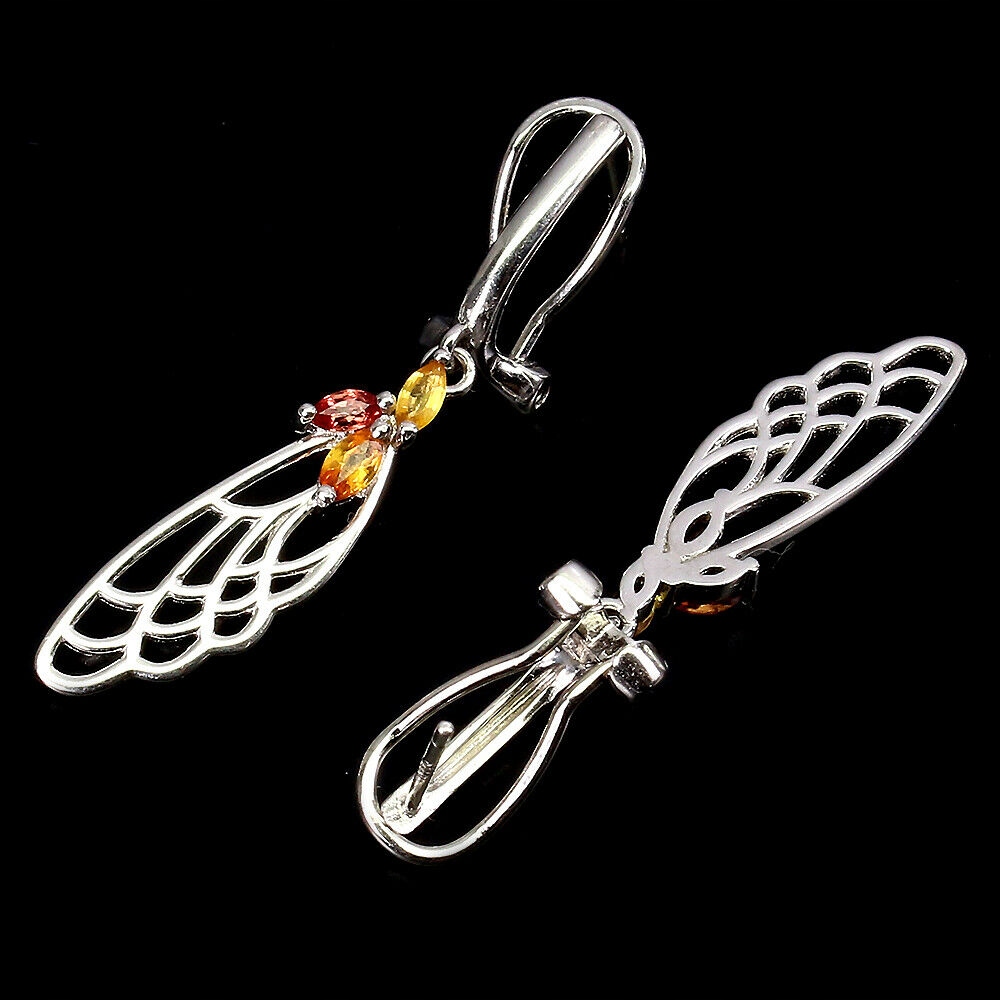 Oferujemy Państwu nowe, pozłacane białym złotem 14K, srebrne - próba 925 kolczyki skrzydła z naturalnymi szafirami Songea.