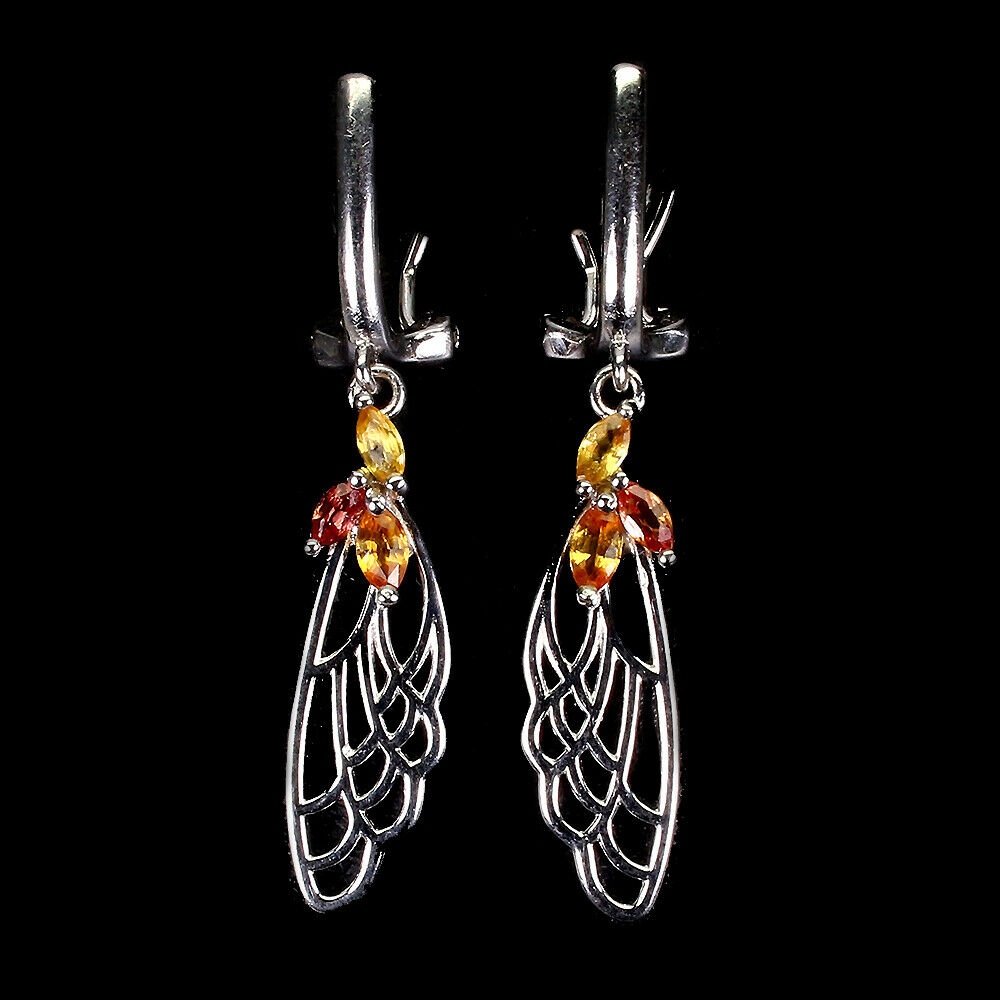 1 Srebrne kolczyki natural szafiry Songea skrzydła