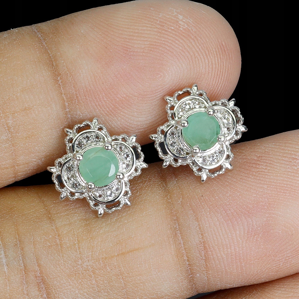 2 Srebrne delikatne eleganckie kolczyki naturalne białe topazy szmaragdy
