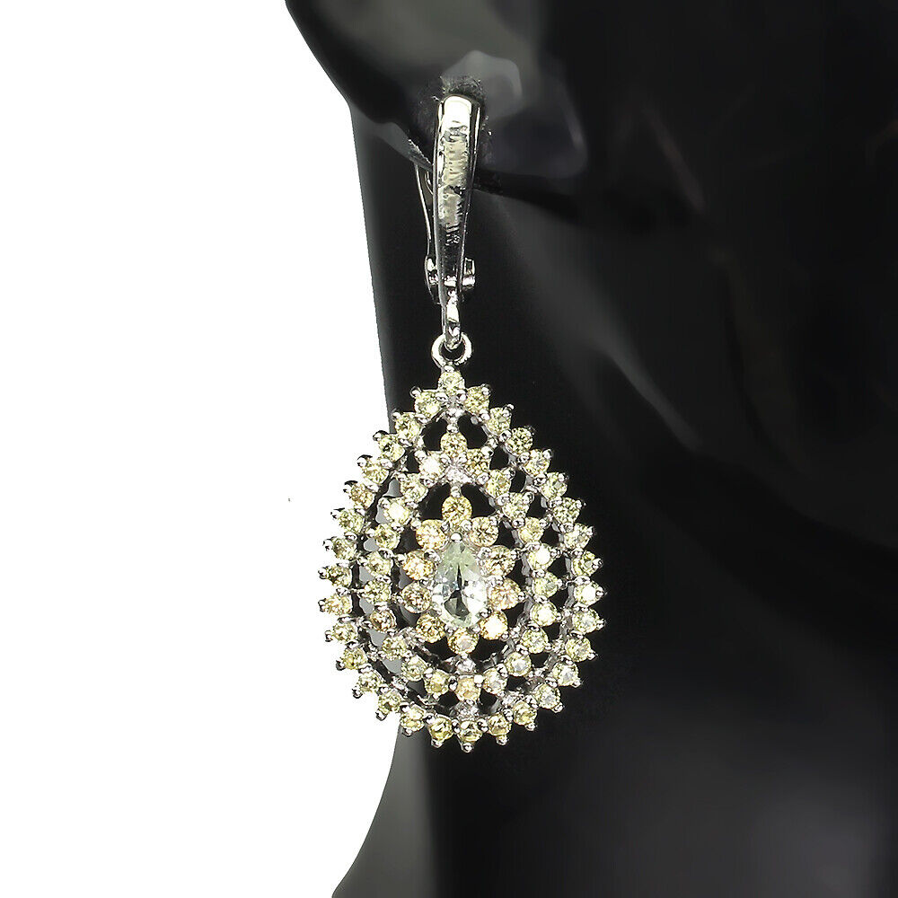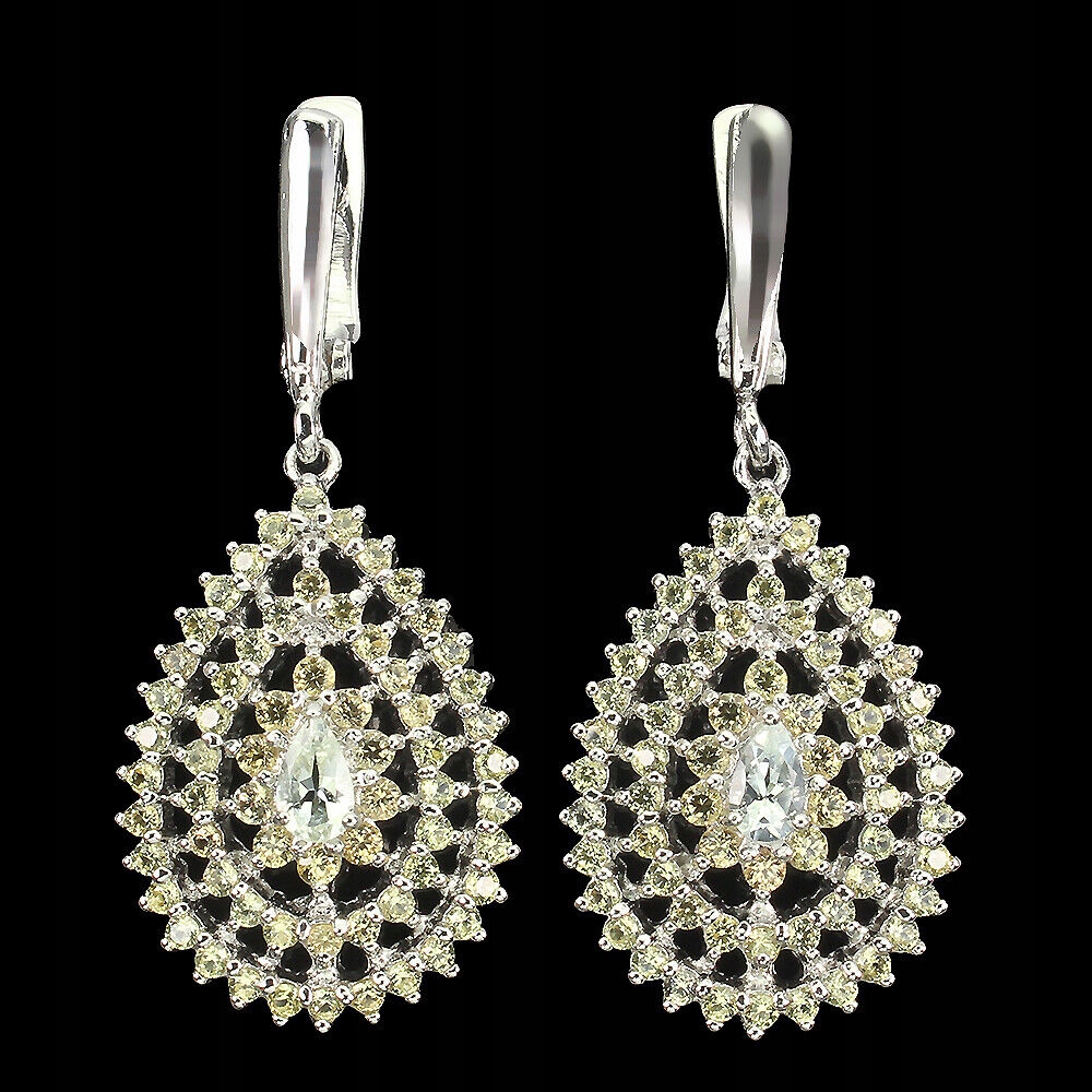 Oferujemy Państwu nowe, pozłacane 14K białym złotem, srebrne - próba 925 kolczyki z naturalnymi szafirami Songea i akwamarynami.
