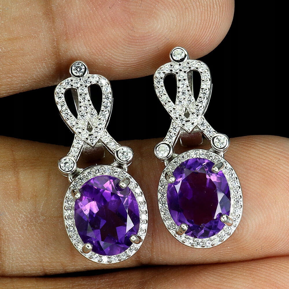 4 Delikatne srebrne kolczyki naturalne ametysty cyrkonie