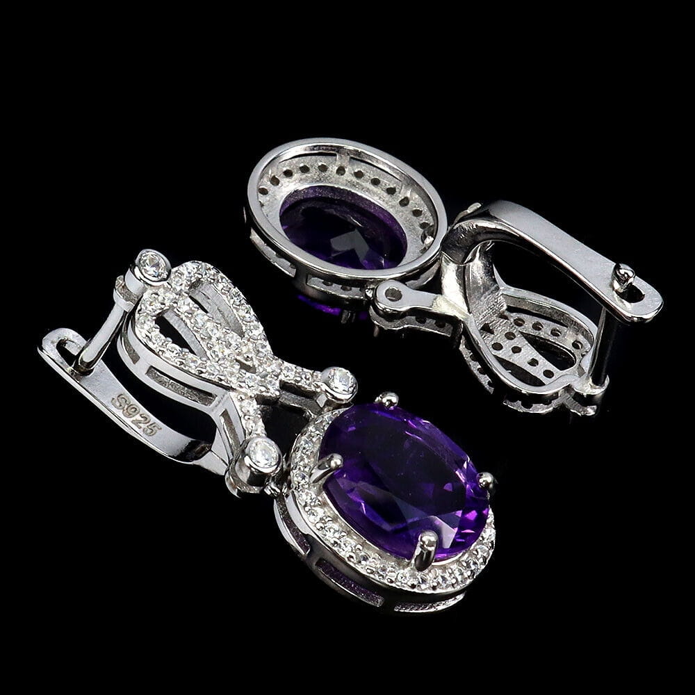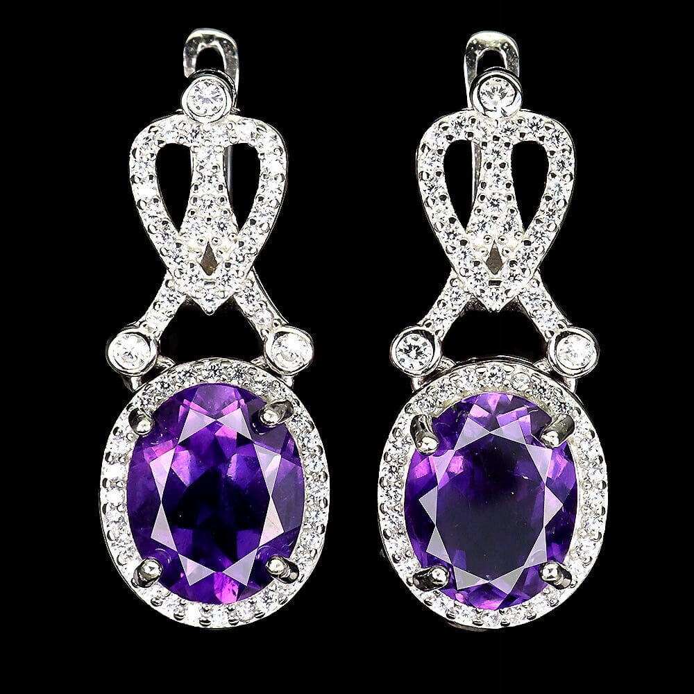 oferujemy Państwu nowe, pozłacane białym 14K złotem, srebrne - próba 925 kolczyki z naturalnymi ametystami i cyrkoniami.