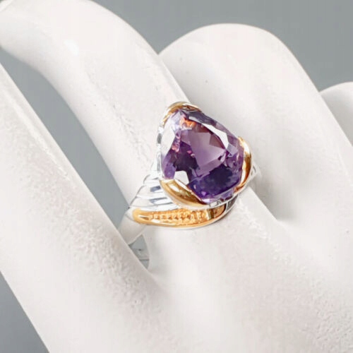 925 Artystyczny pierścionek natural ametyst r 17.5