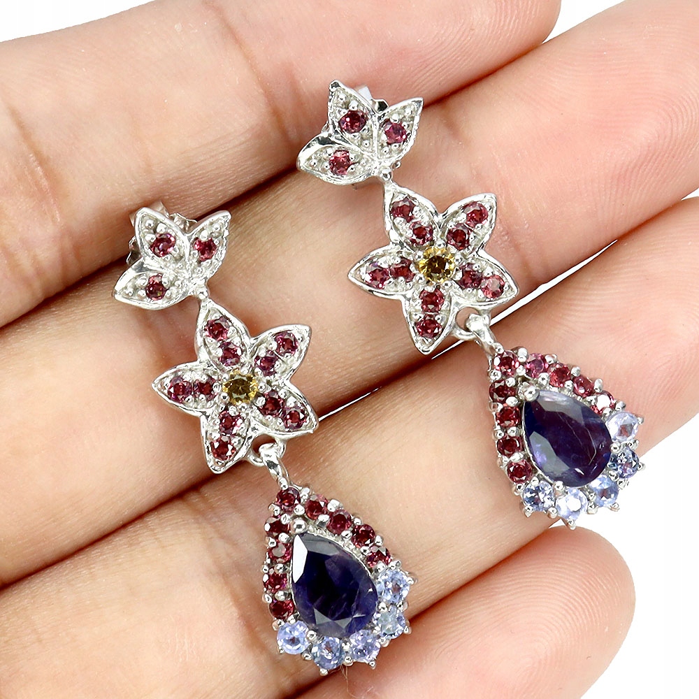 925 Delikatne kolczyki naturalne tanzanity iolity granaty szafiry Songea 4