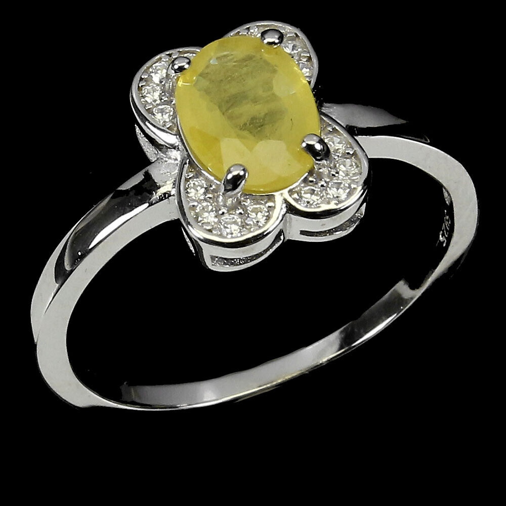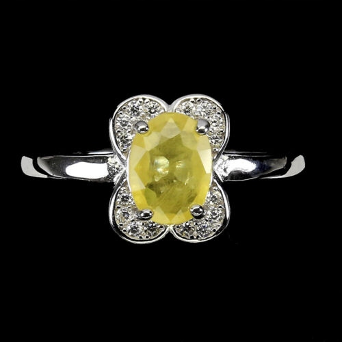 Oferujemy Państwu nowy, pozłacany 14K białym złotem, srebrny - próba 925 pierścionek z naturalnym żółtym szafirem i cyrkoniami.