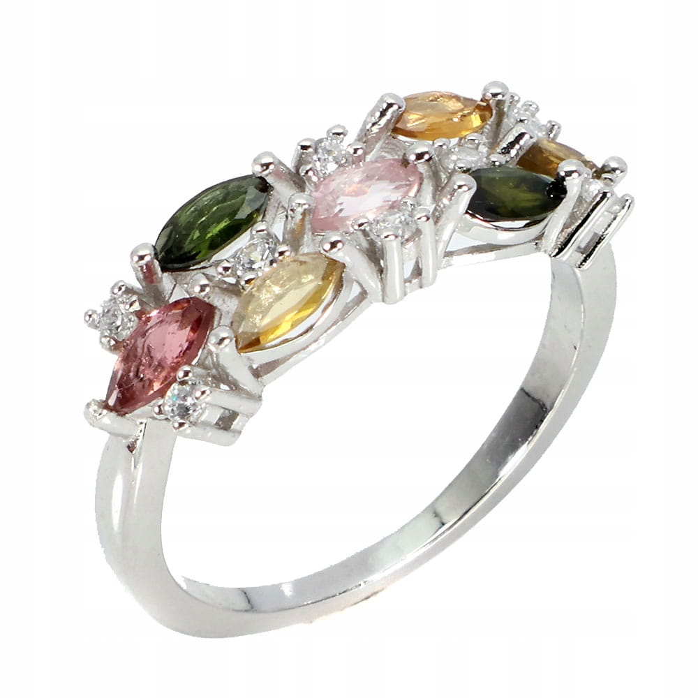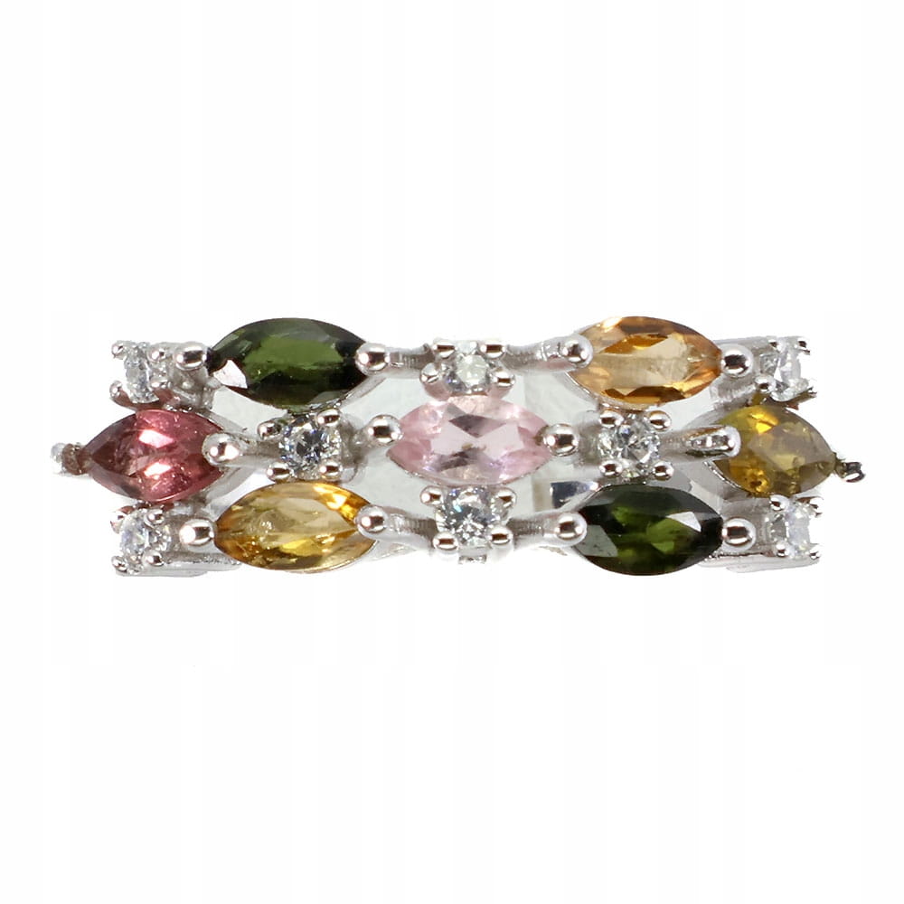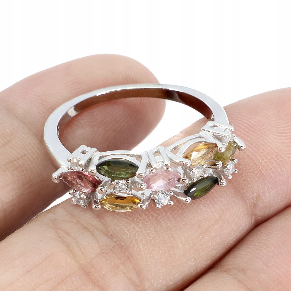 925 Delikatny srebrny pierścionek naturalne turmaliny r 17