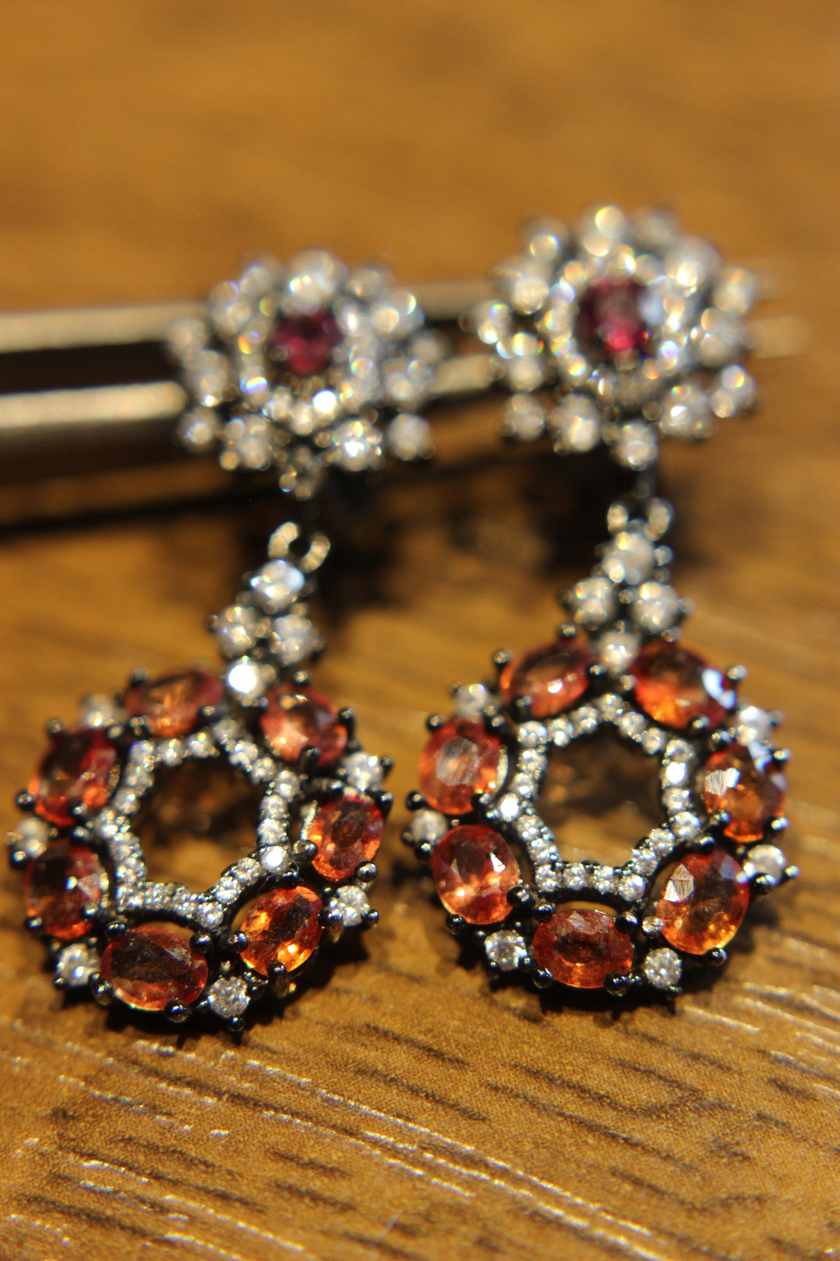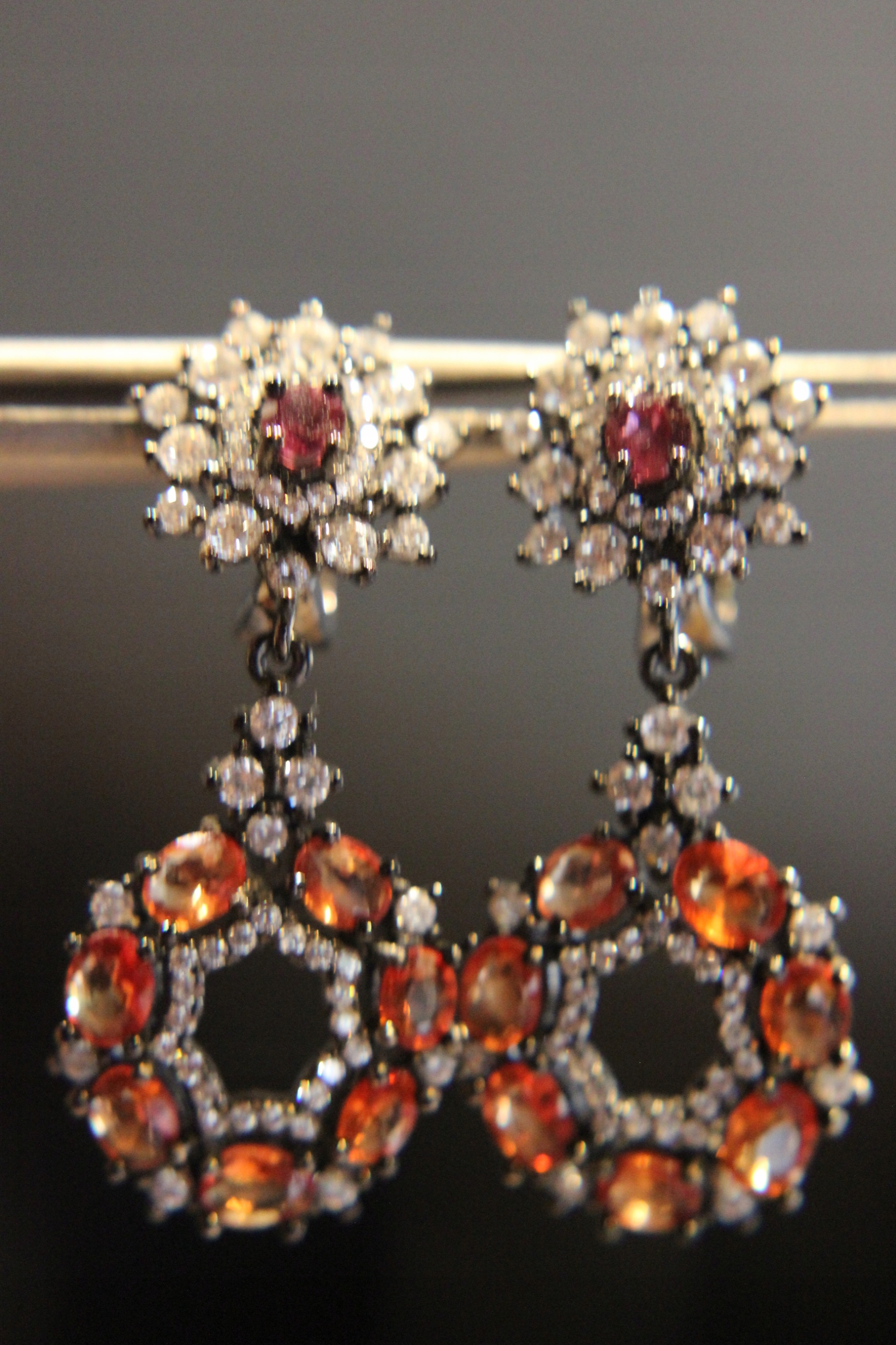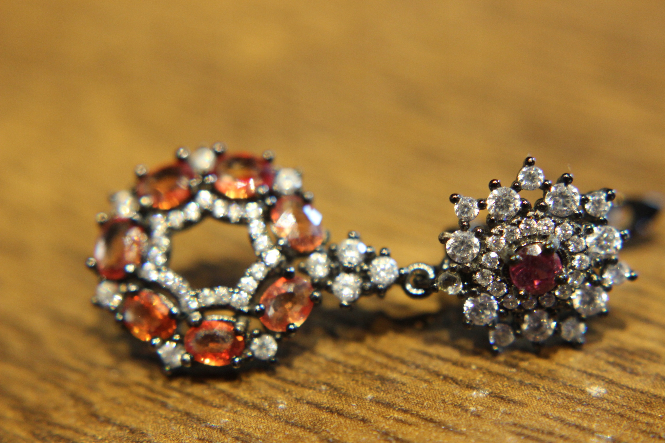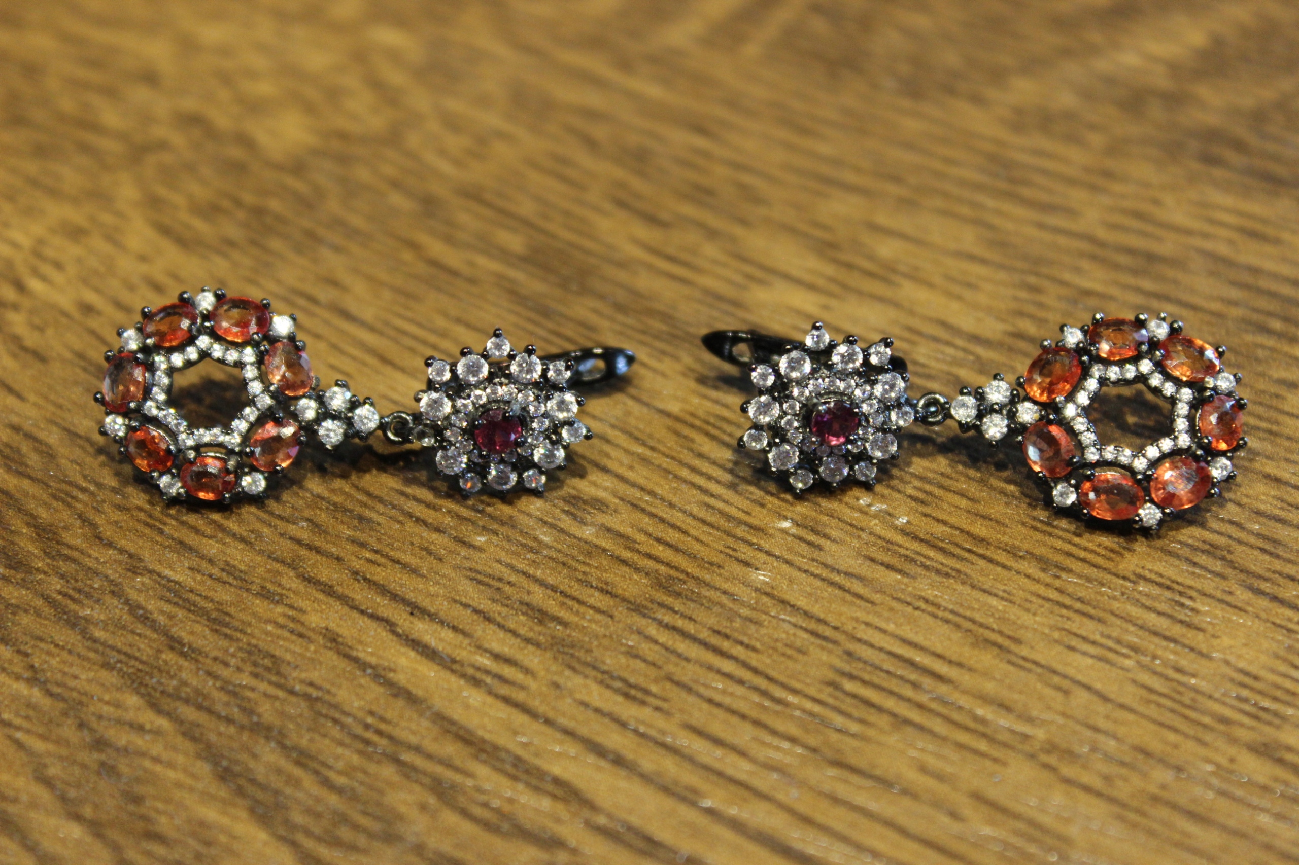oferujemy Państwu nowe, rodowane na czarno srebrne - próba 925 kolczyki z naturalnymi szafirami i cyrkoniami.