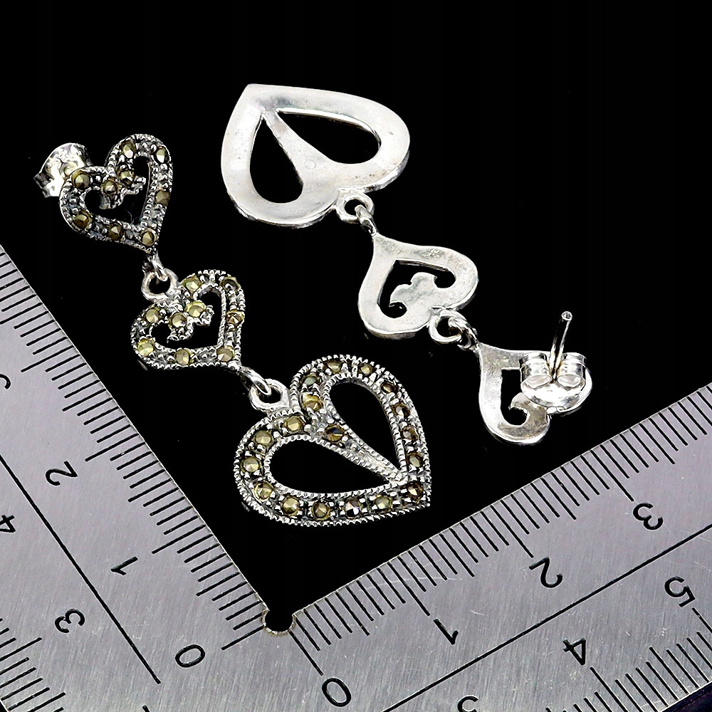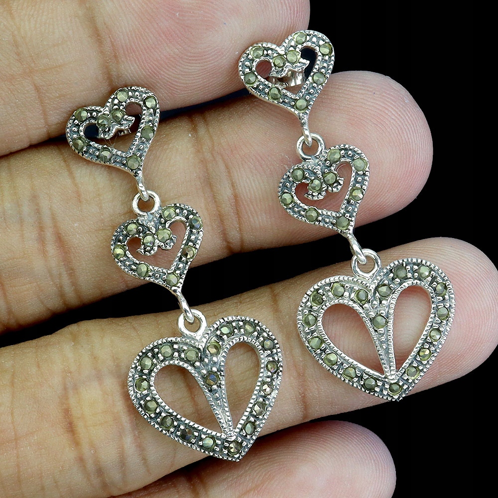 925 Kolczyki srebrne wiszące zjawiskowe naturalne markazyty serca 5