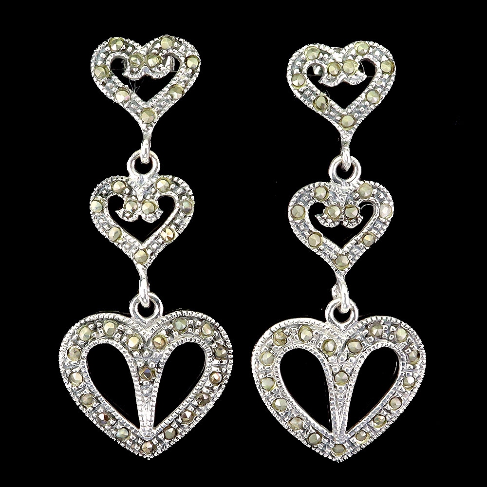 Oferujemy Państwu srebrne - próba 925 - kolczyki z naturalnymi markazytami. Piękne serca.