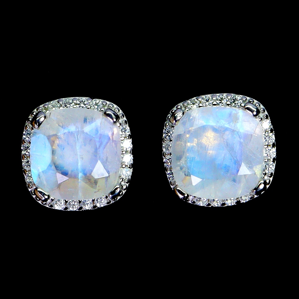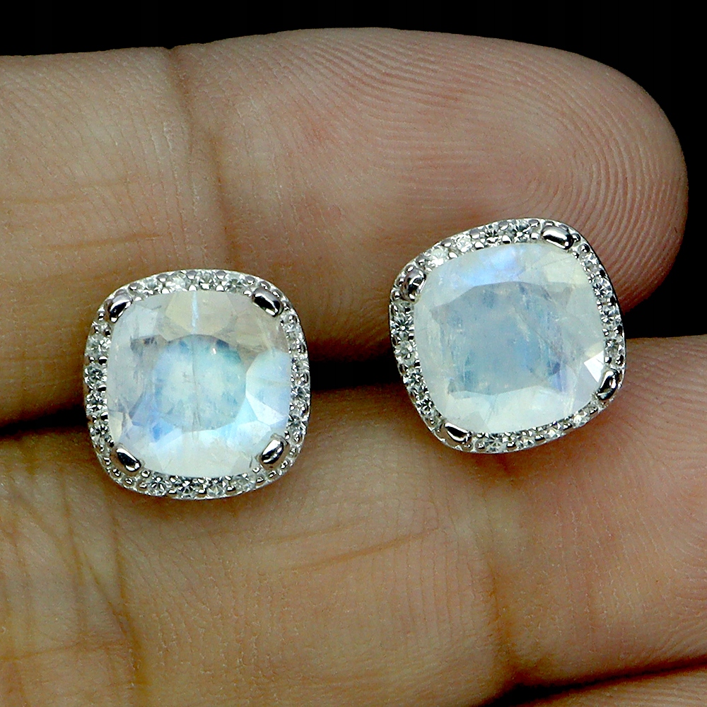 925 Kolczyki srebrne zjawiskowe naturalne kamienie księżycowe cyrkonie 5
