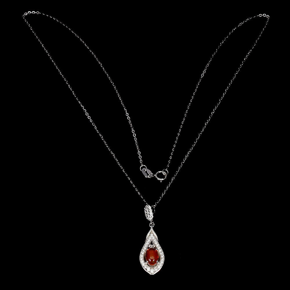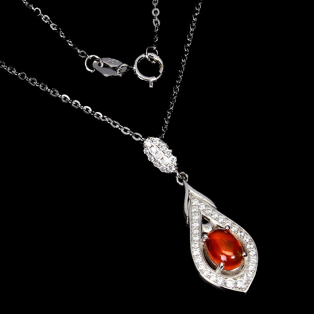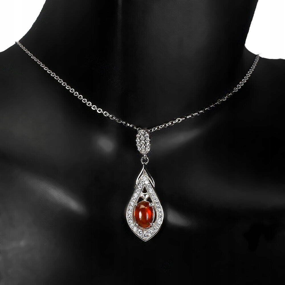 925 Naszyjnik pomarańczowy opal cyrkonie delikatny