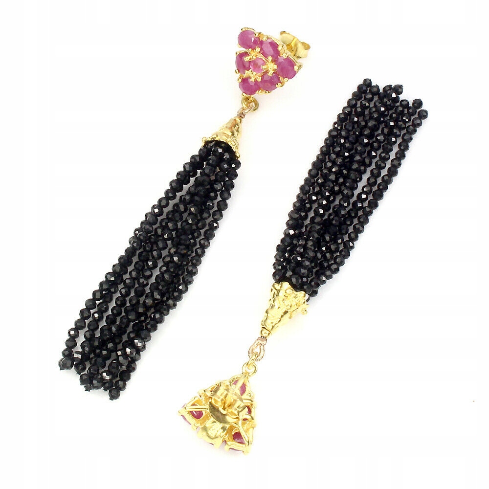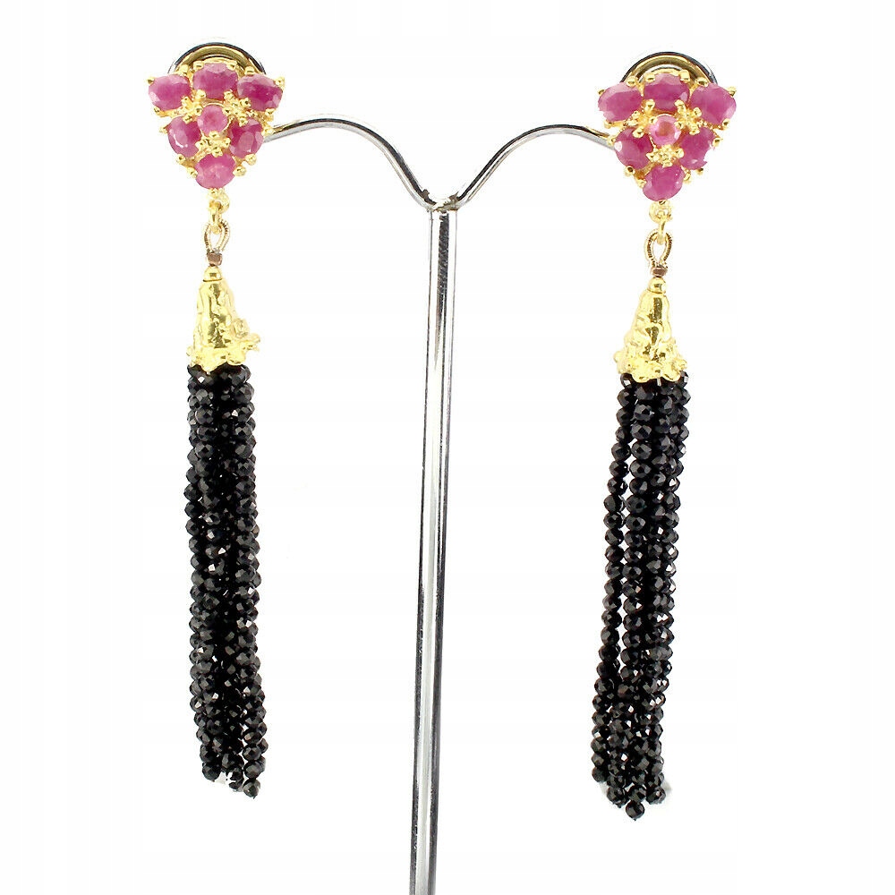 oferujemy Państwu nowe, pozłacane 14K żółtym złotem srebrne próba 925 kolczyki z naturalnymi rubinami i czarnymi spinelami.