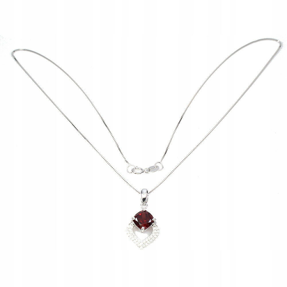 Oferujemy Państwu nowy, pozłacany 14K białym złotem, srebrny - próba 925 naszyjnik z naturalnym granatem i cyrkoniami.