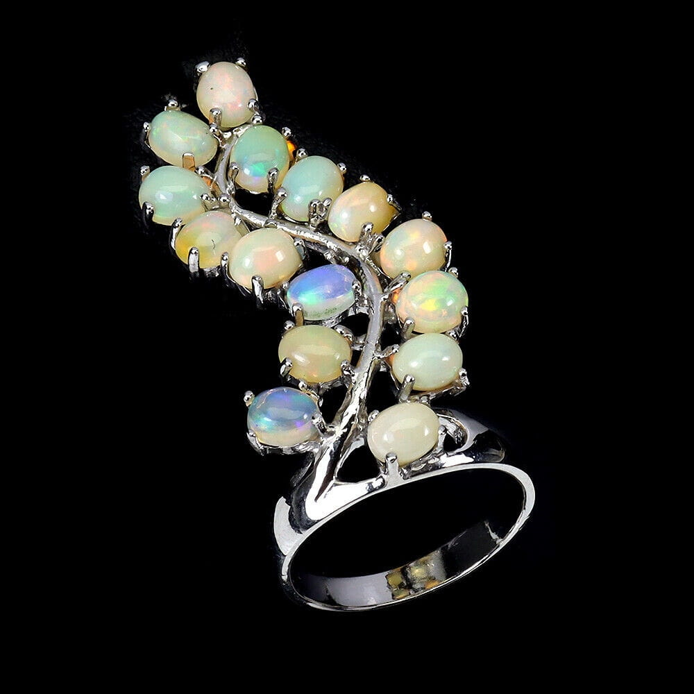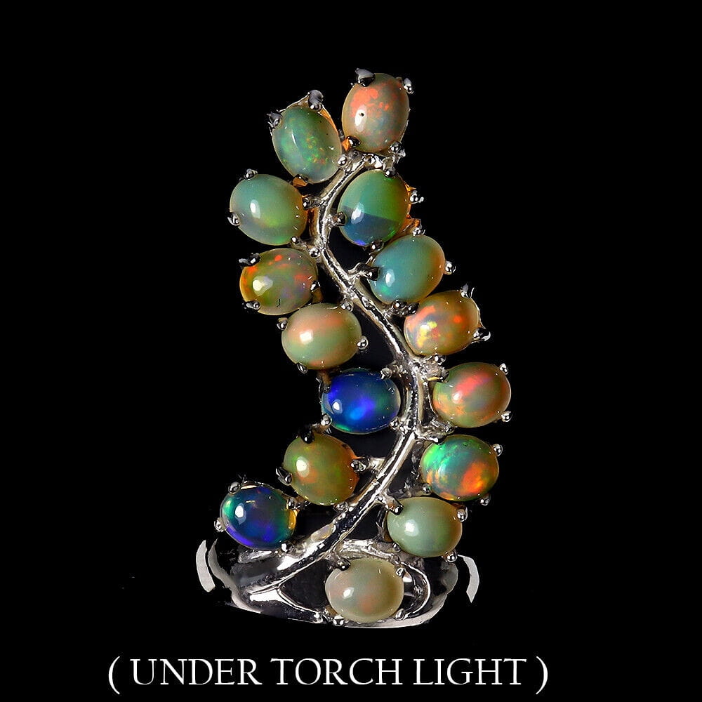 925 Piękny srebrny pierścionek naturalne opale ogniste r 14