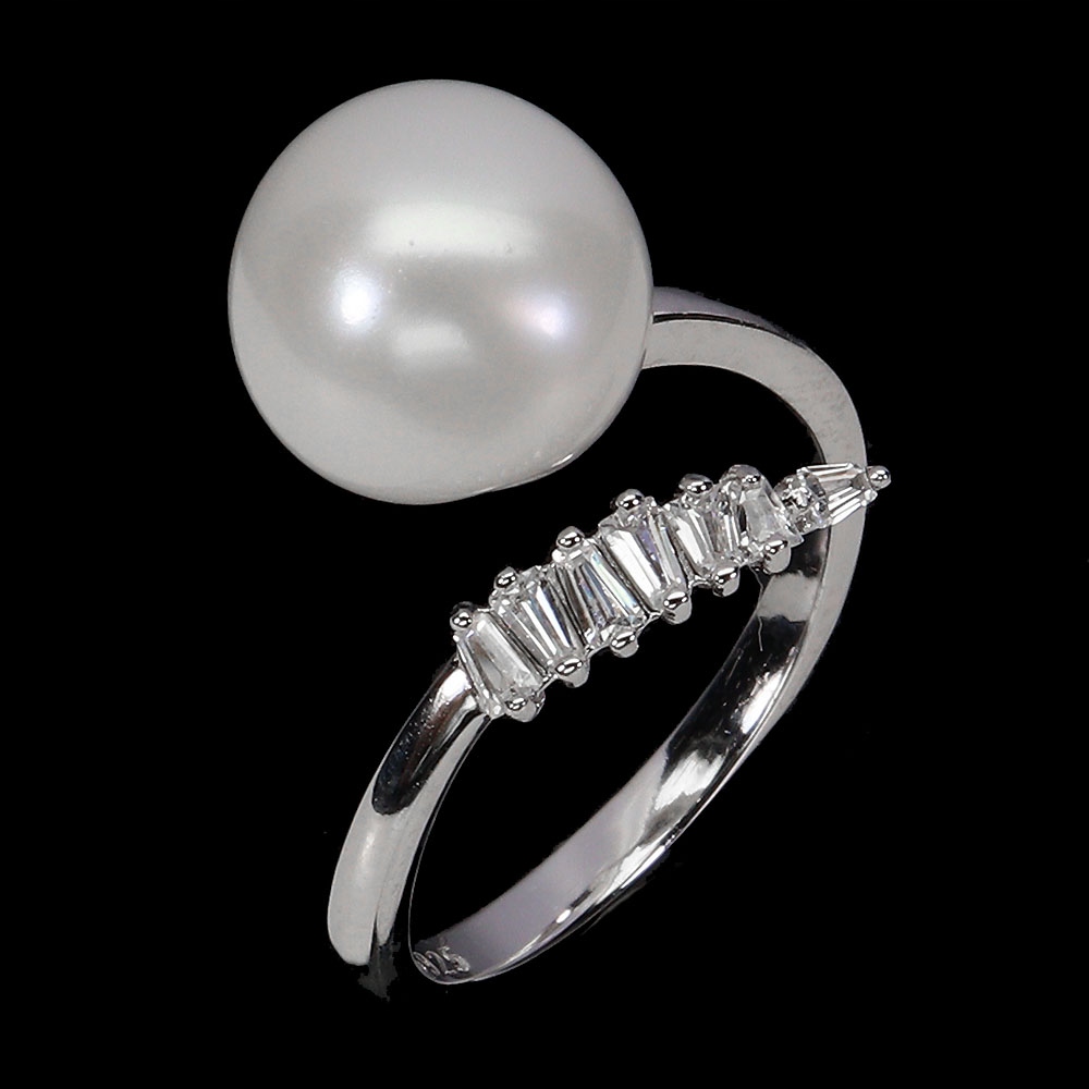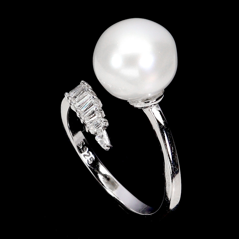 Oferujemy Państwu pozłacany białym 14K złotem, srebrny - próba 925 - pierścionek z naturalną perłą i cyrkoniami.
