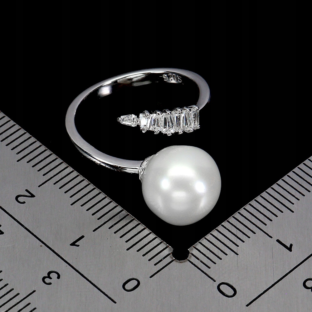 925 Pierścionek delikatny elegancki naturalna kremowa perła cyrkonie r 10