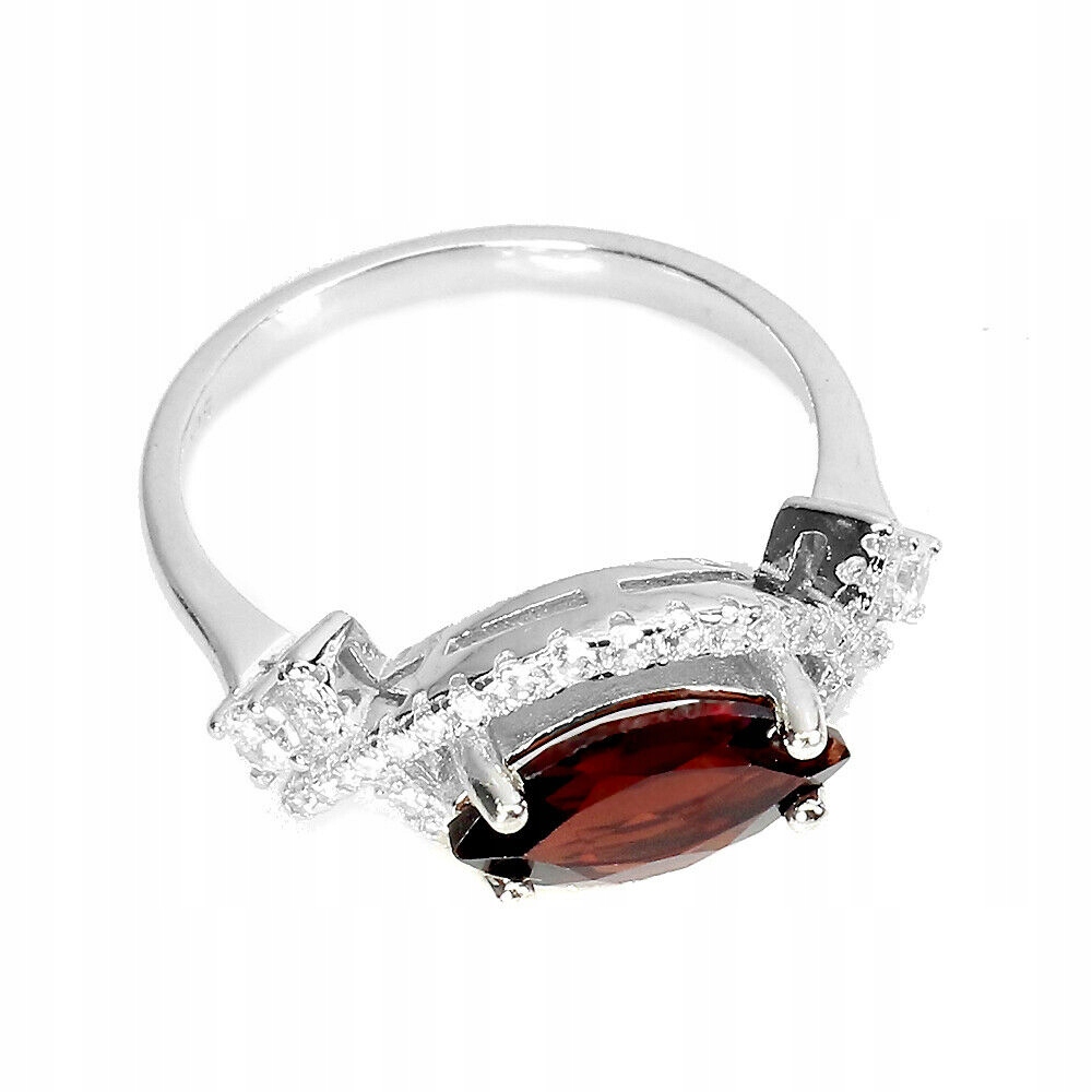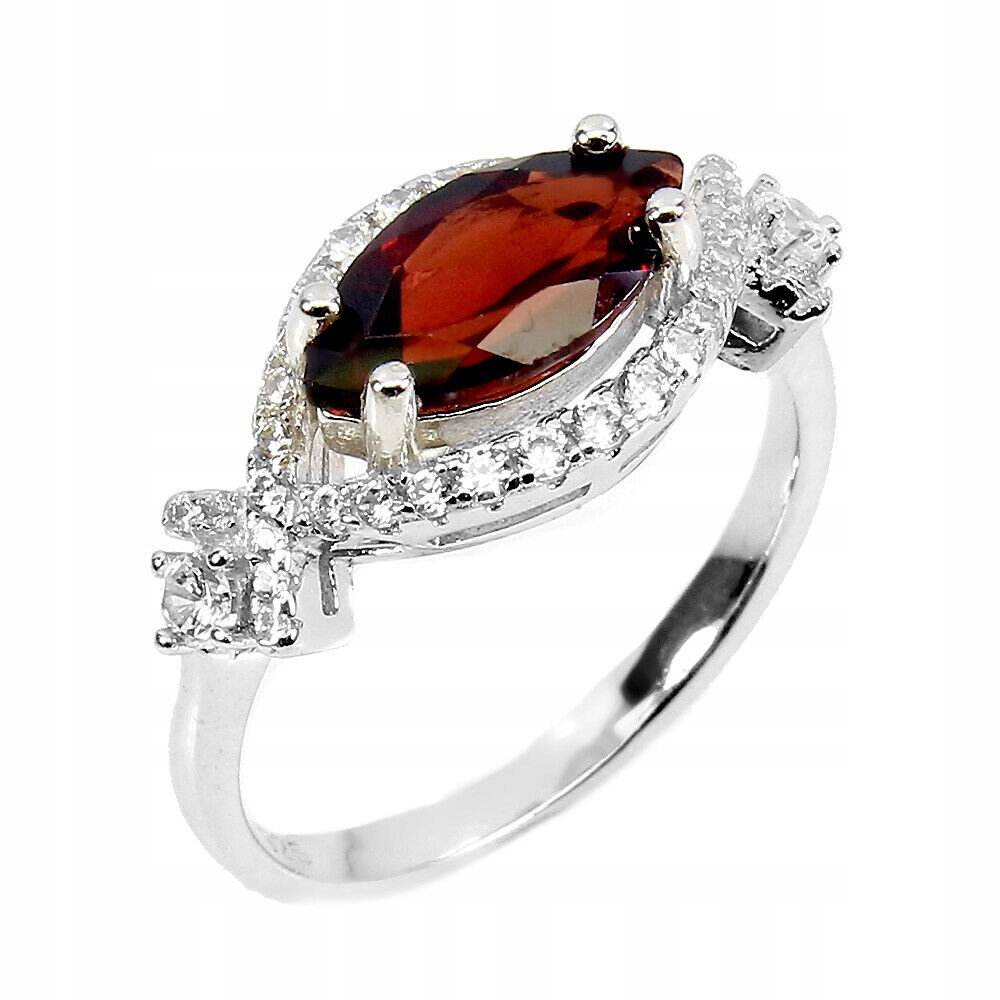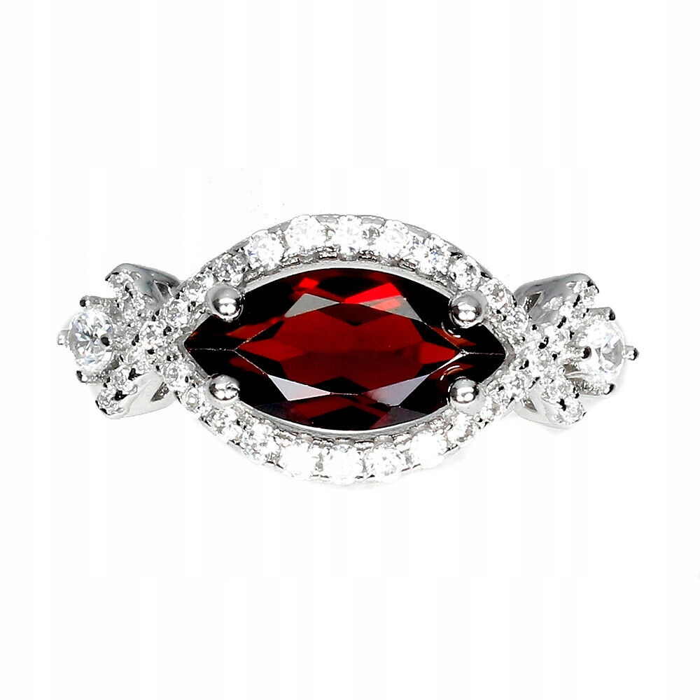 Oferujemy Państwu nowy, pozłacany białym złotem 14K, srebrny - próba 925 pierścionek z naturalnym granatem i cyrkoniami.