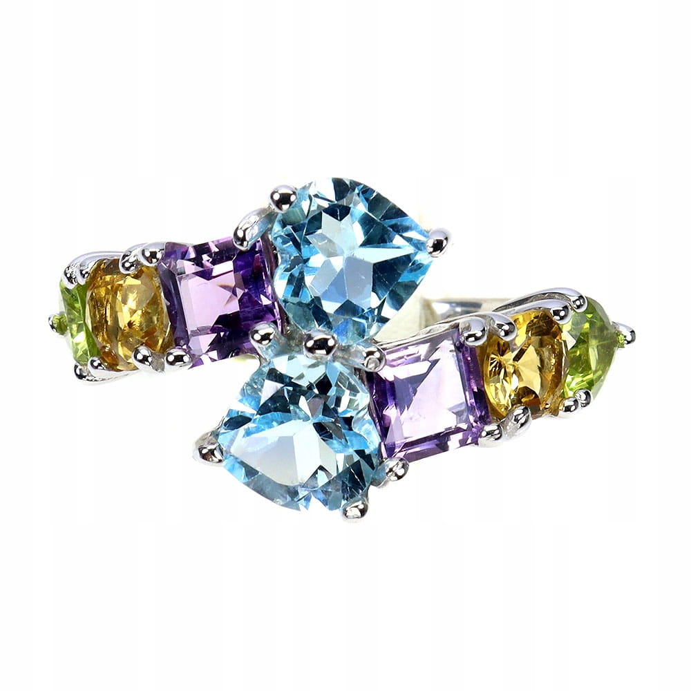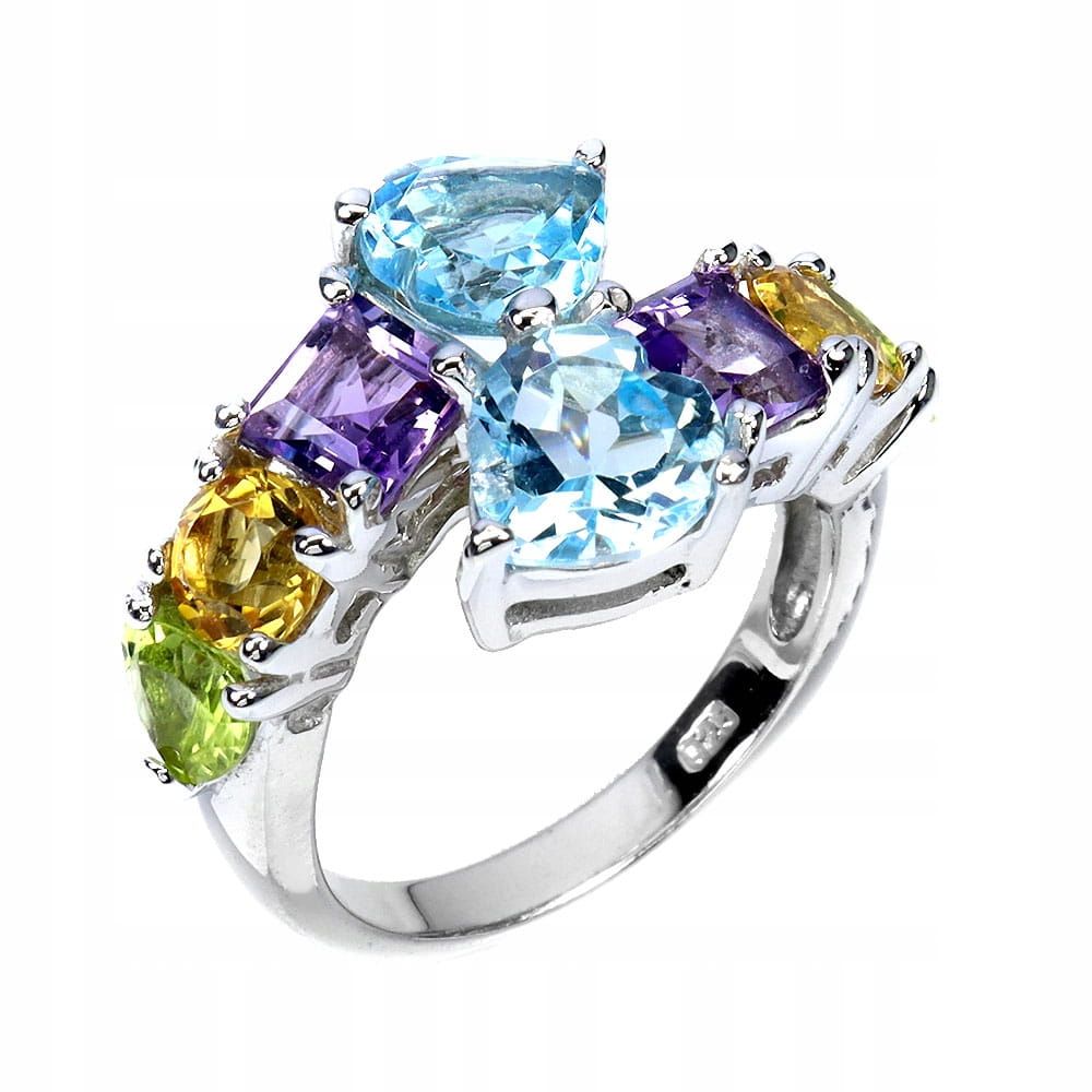 925 Pierścionek naturalne cytryny ametysty topazy oliwiny r 17 serce