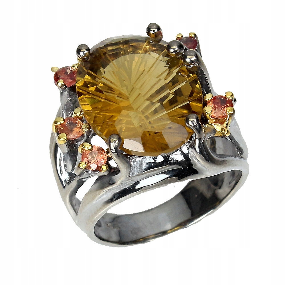925 Pierścionek naturalne szafiry i 15ct cytryn r 16