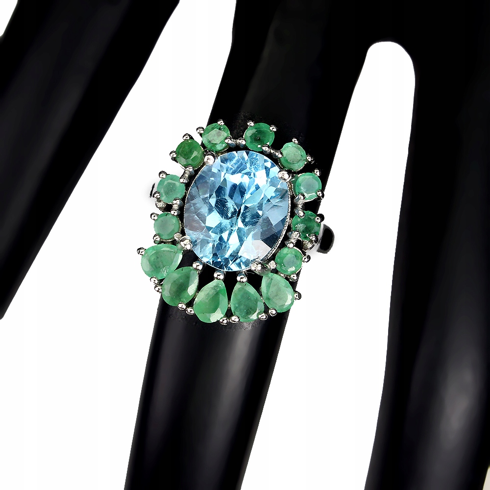 925 Pierścionek r 14 szmaragdy sky topaz naturalny
