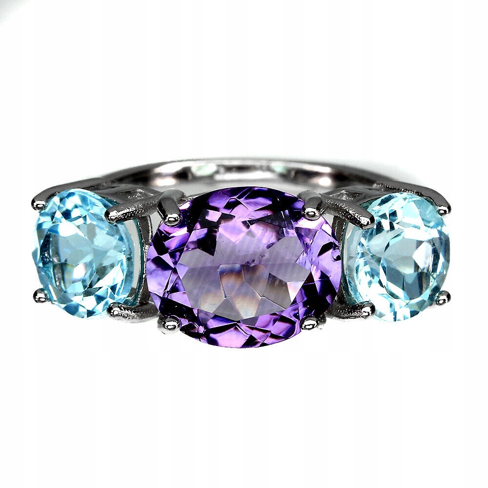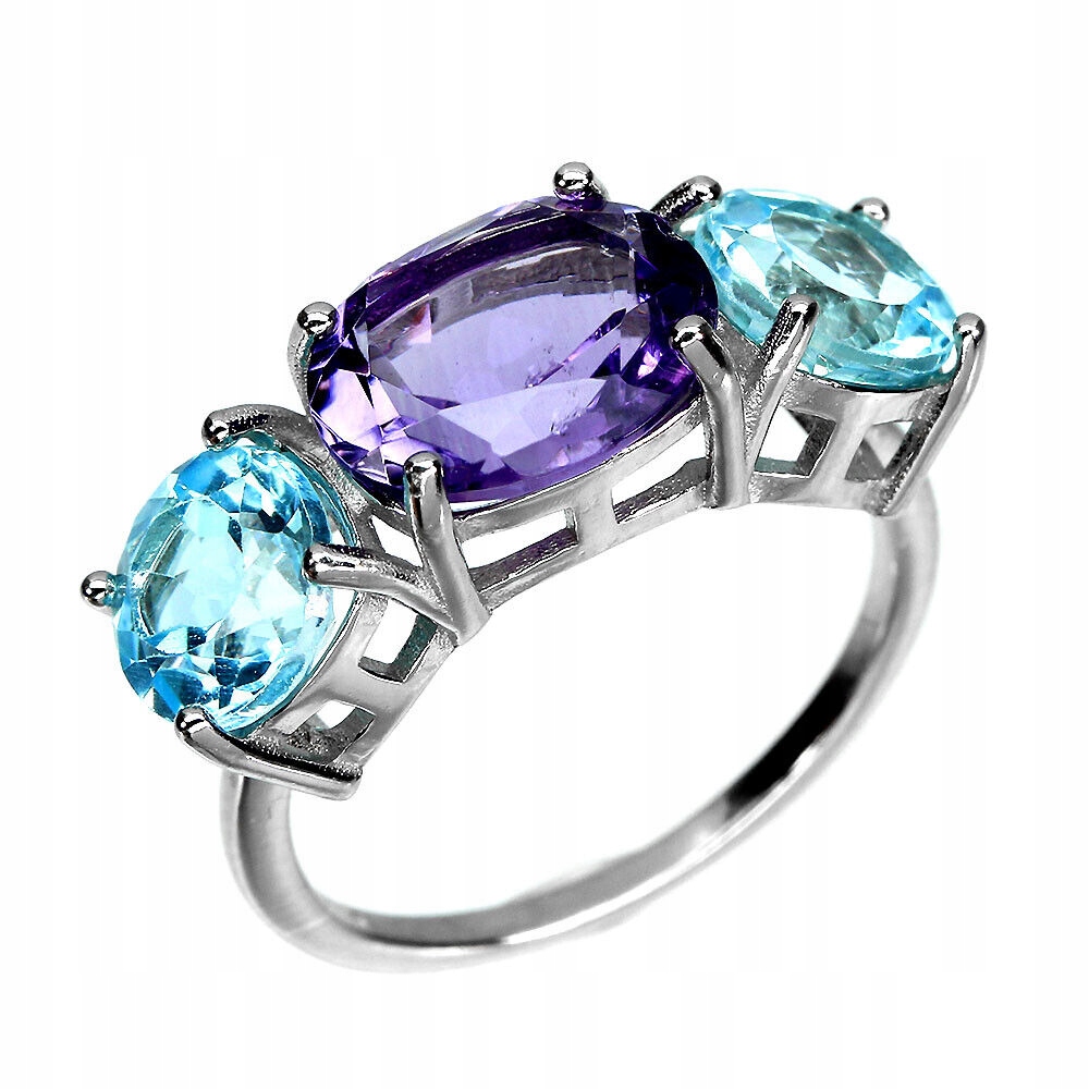 925 Pierścionek r 16 naturalne topazy sky ametyst