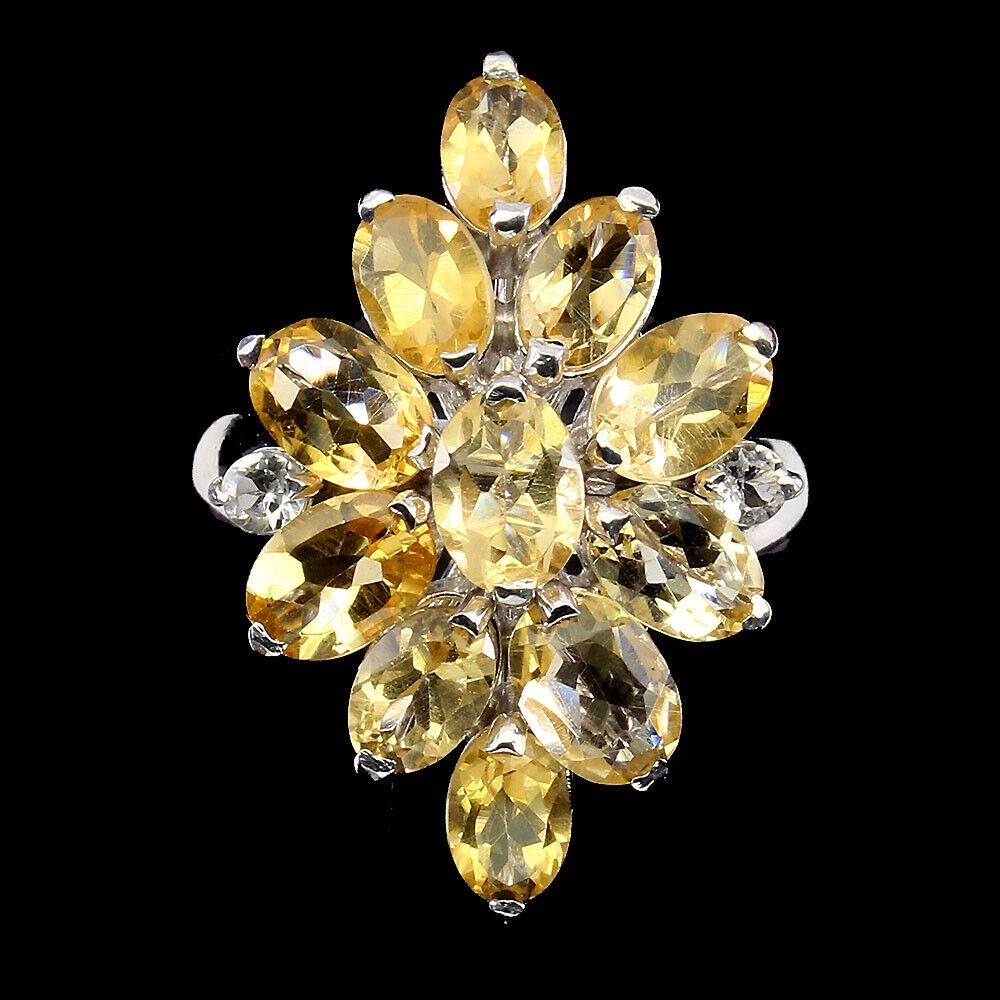 Oferujemy Państwu nowy, srebrny - próba 925- pozłacany 14K białym złotem pierścionek z naturalnymi cytrynami i cyrkoniami.