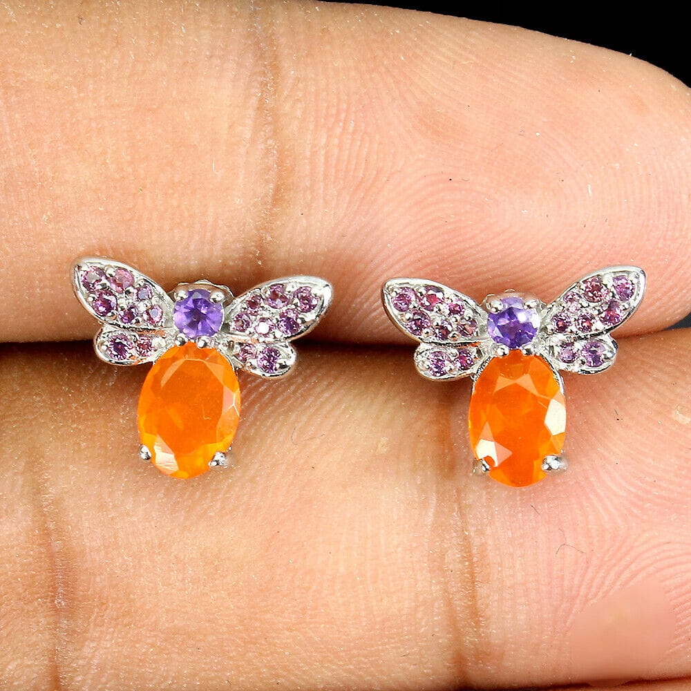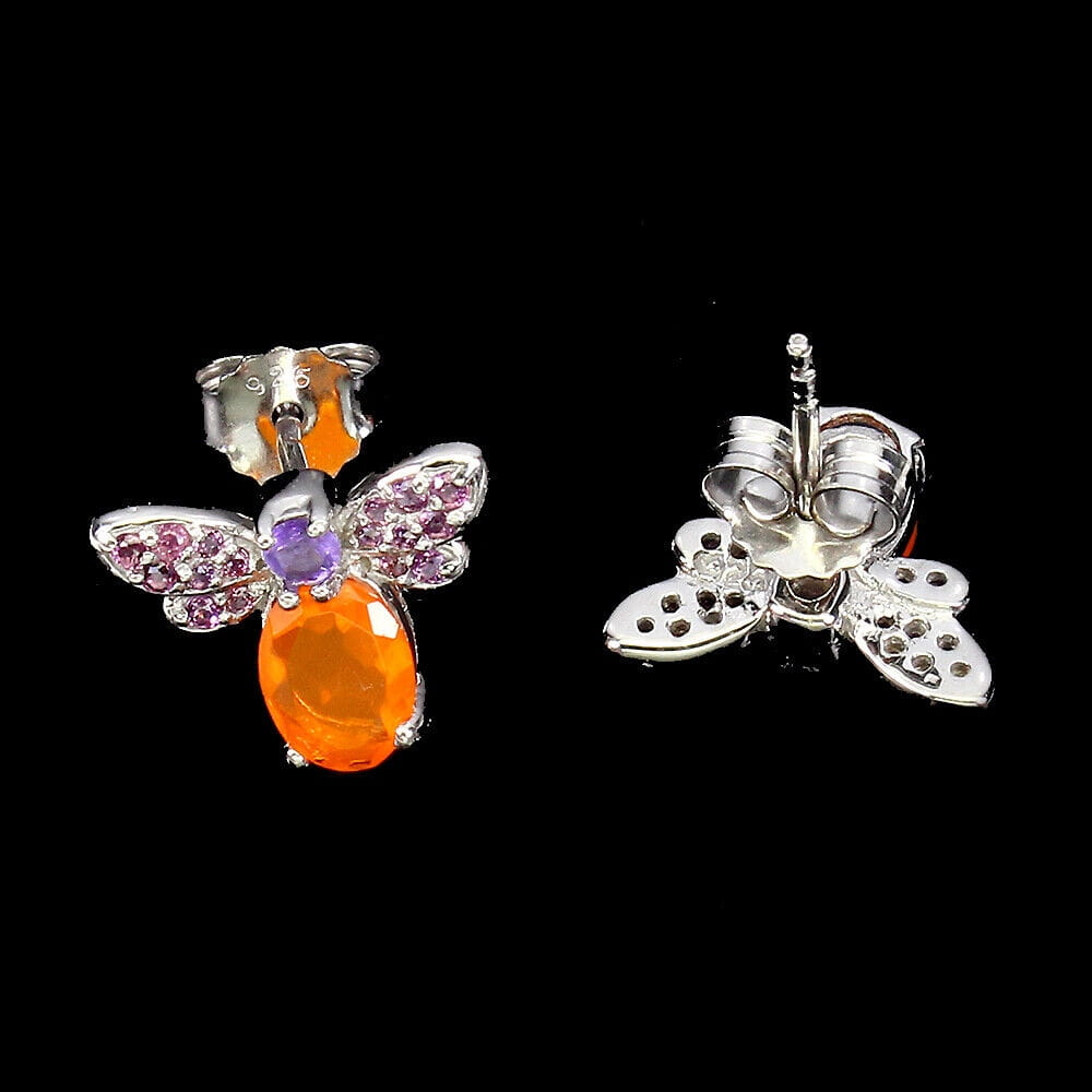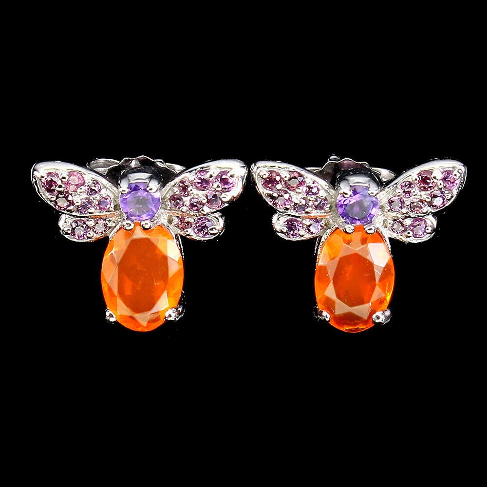 925 Pszczoła kolczyki delikatne granaty ametysty opale pomarańczowe 3