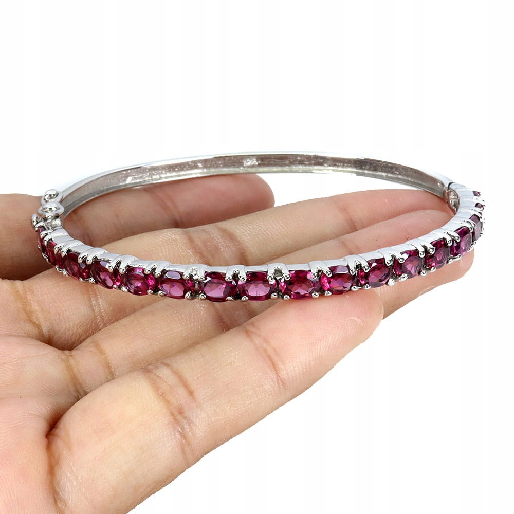 925 Srebrna bransoletka naturalne granaty rodolity elegancka obwód 17cm