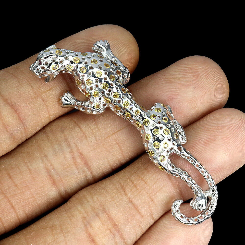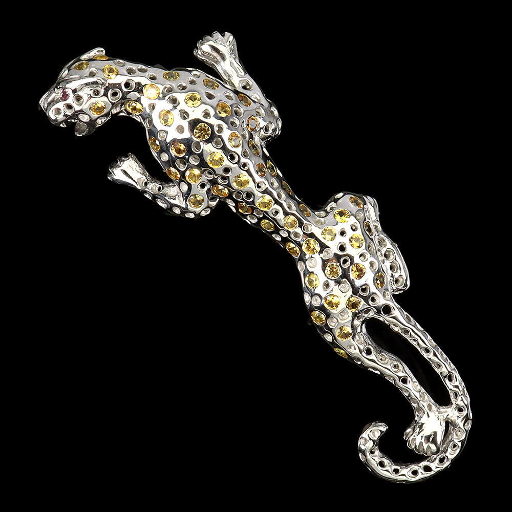 925 Srebrna broszka gepard naturalne szafiry Songea granaty