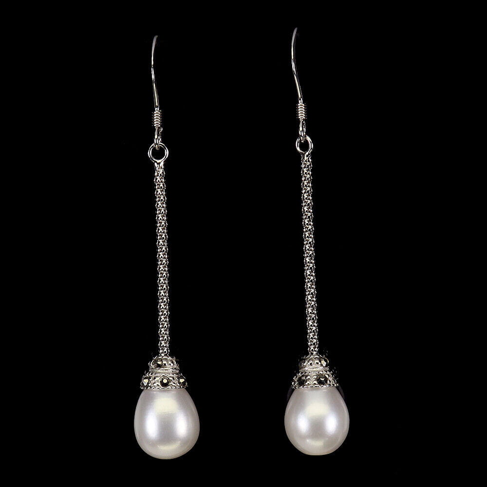 Oferujemy Państwu nowe, srebrne próba 925 kolczyki z naturalnymi perłami i markazytami.