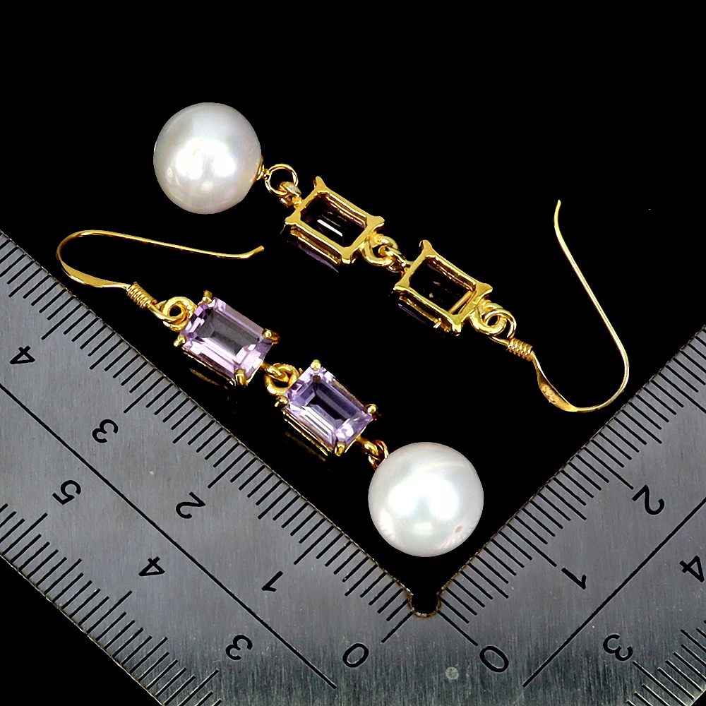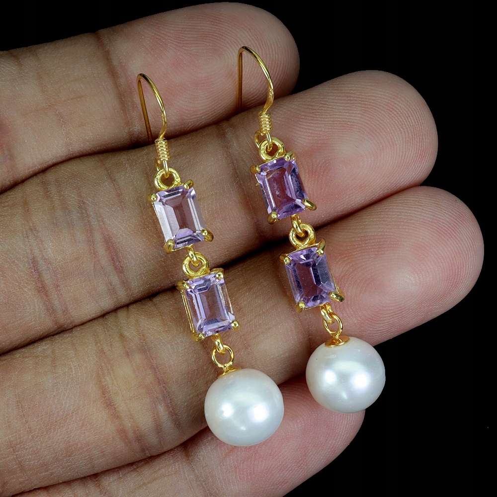 925 Srebrne wiszące kolczyki naturalne ametysty perły zjawiskowe 1