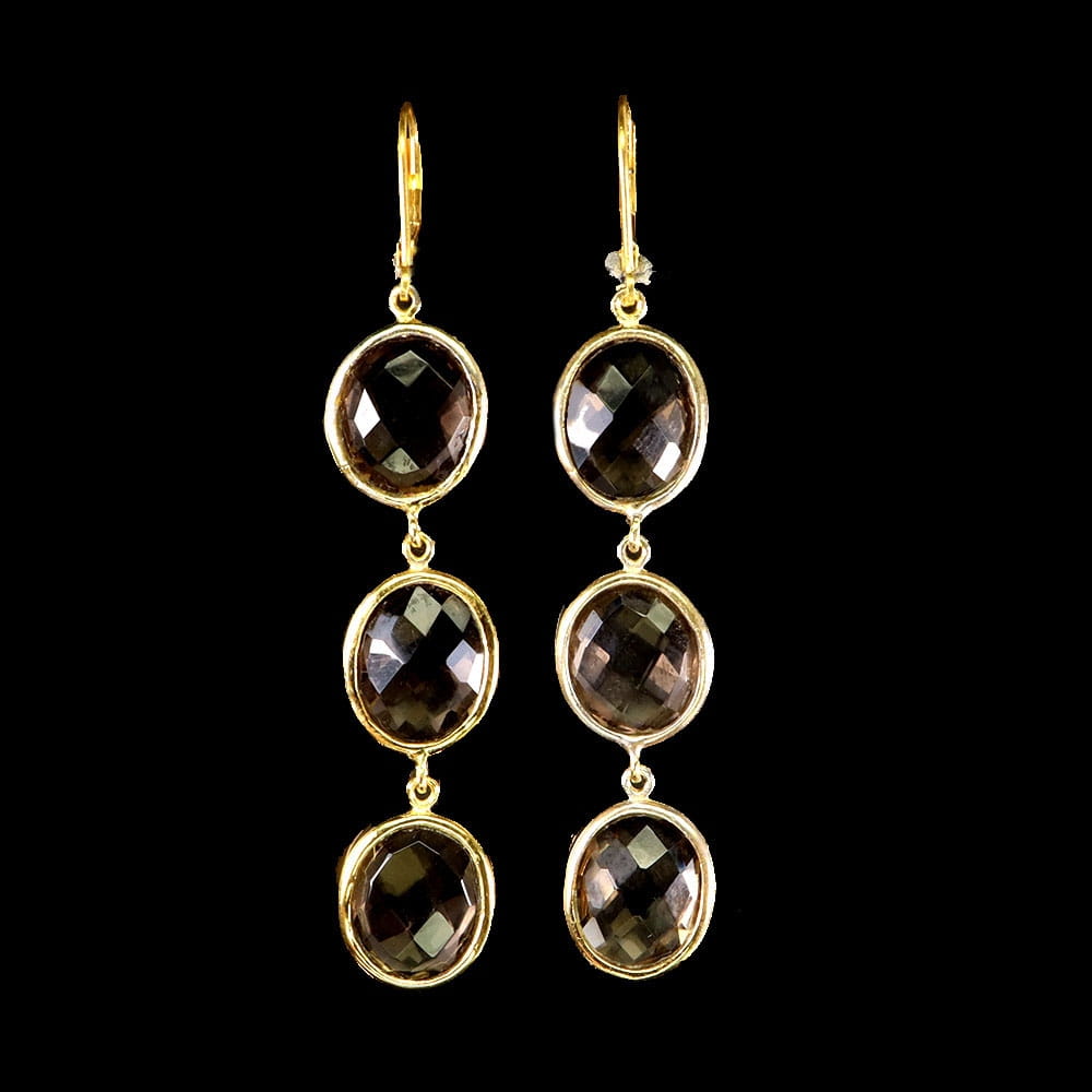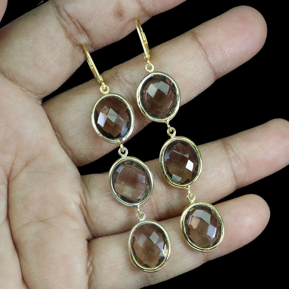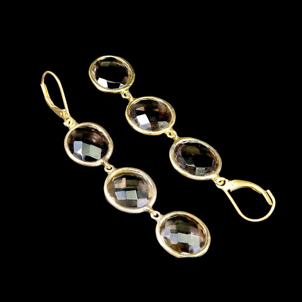 Oferujemy Państwu nowe, pozłacane 14K żółtym złotem, srebrne - próba 925 kolczyki z naturalnym kwarcem dymnym.