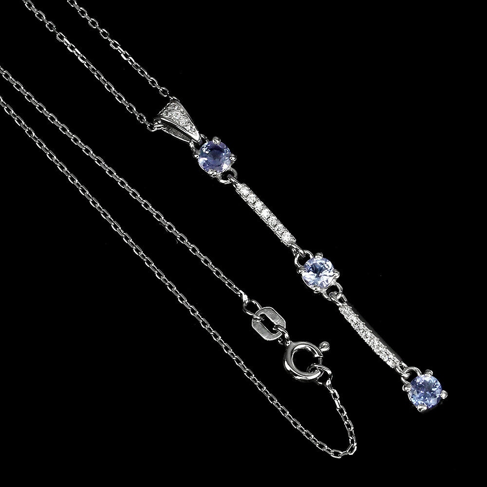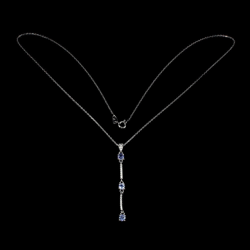Oferujemy Państwu nowy, pozłacany 14K białym złotem, srebrny - próba 925 naszyjnik z naturalnymi tanzanitami i cyrkoniami.