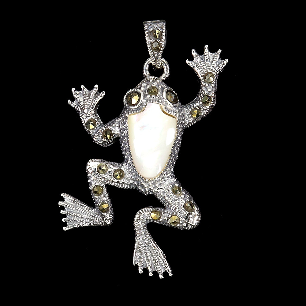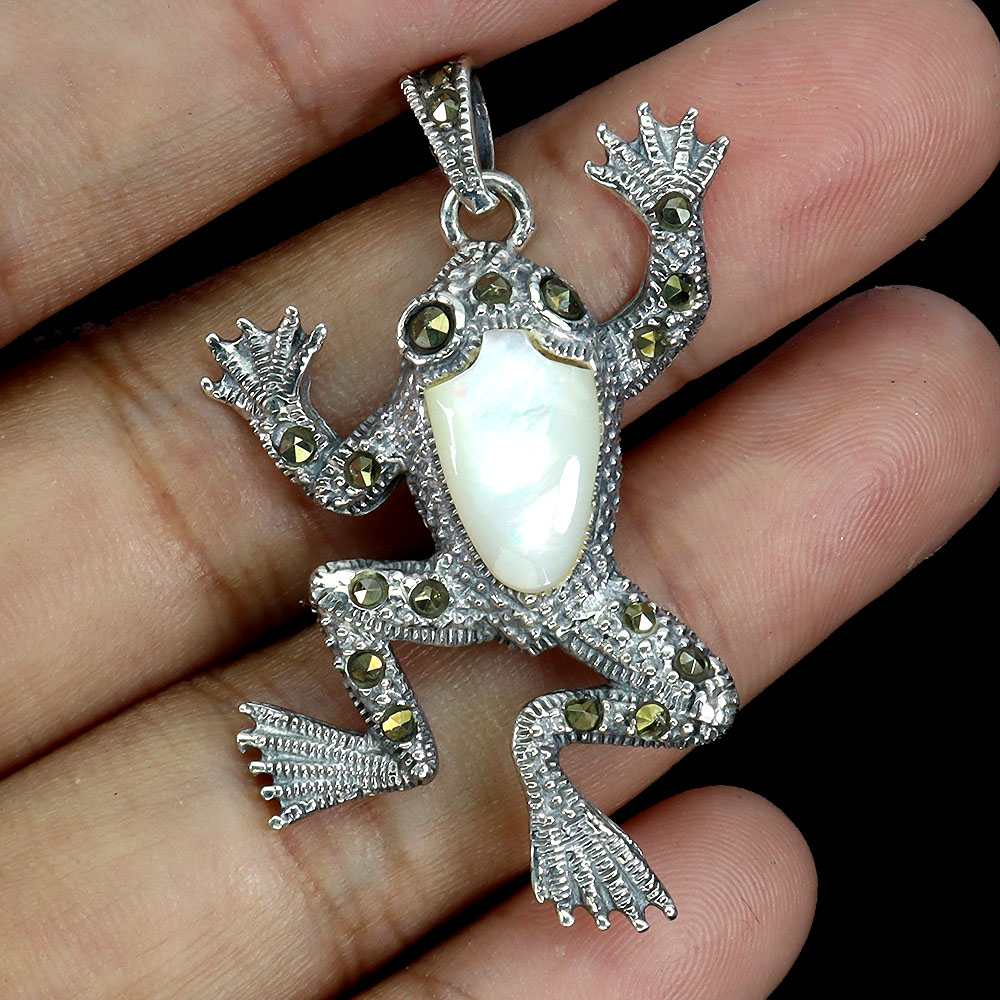 925 Wisiorek srebrny naturalna masa perłowa markazyty żaba