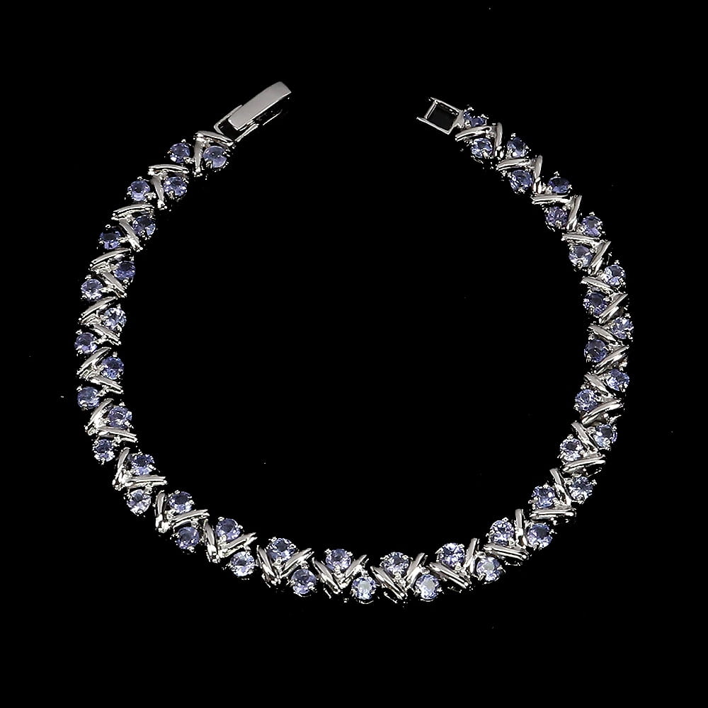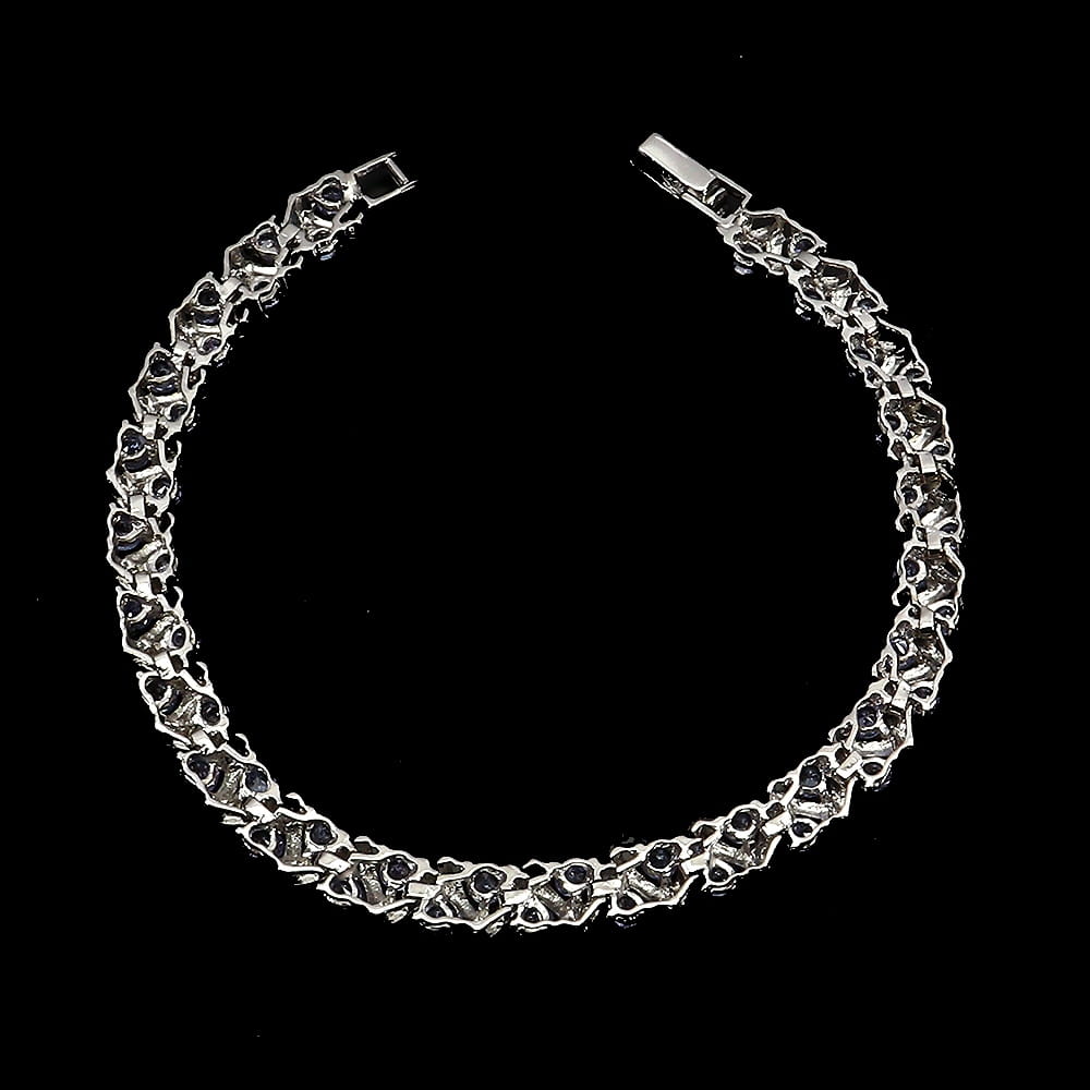 oferujemy Państwu pozłacaną białym 14K złotem, srebrną - próba 925 bransoletkę z naturalnymi tanzanitami.