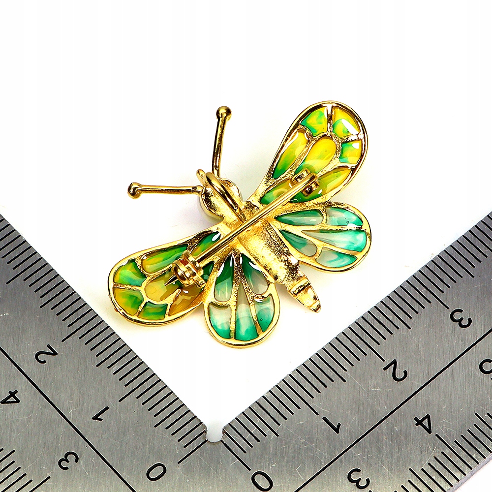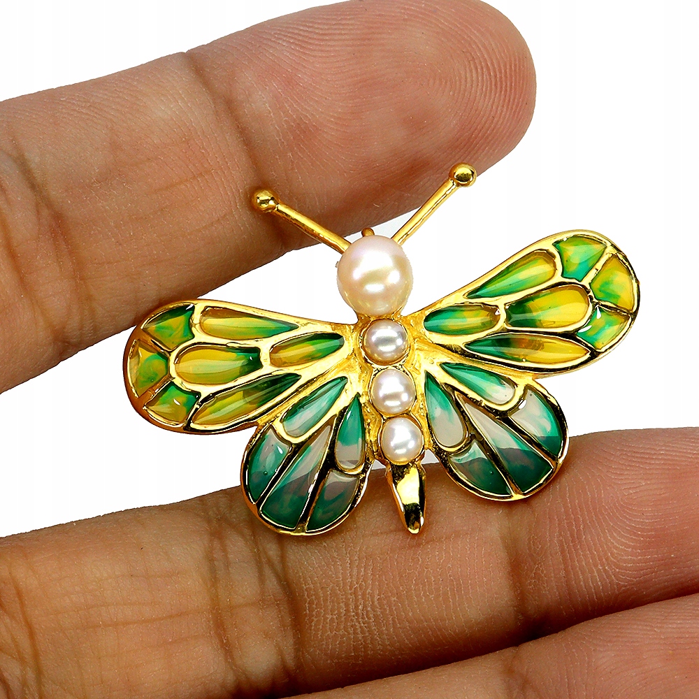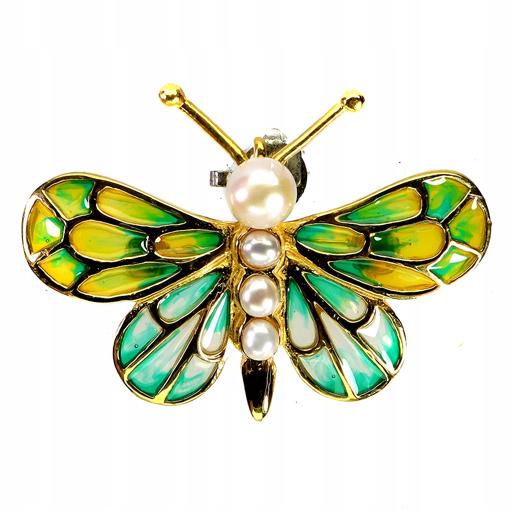 925 Zjawiskowy srebrny wisiorek broszka emaliowana naturalne perły motyl