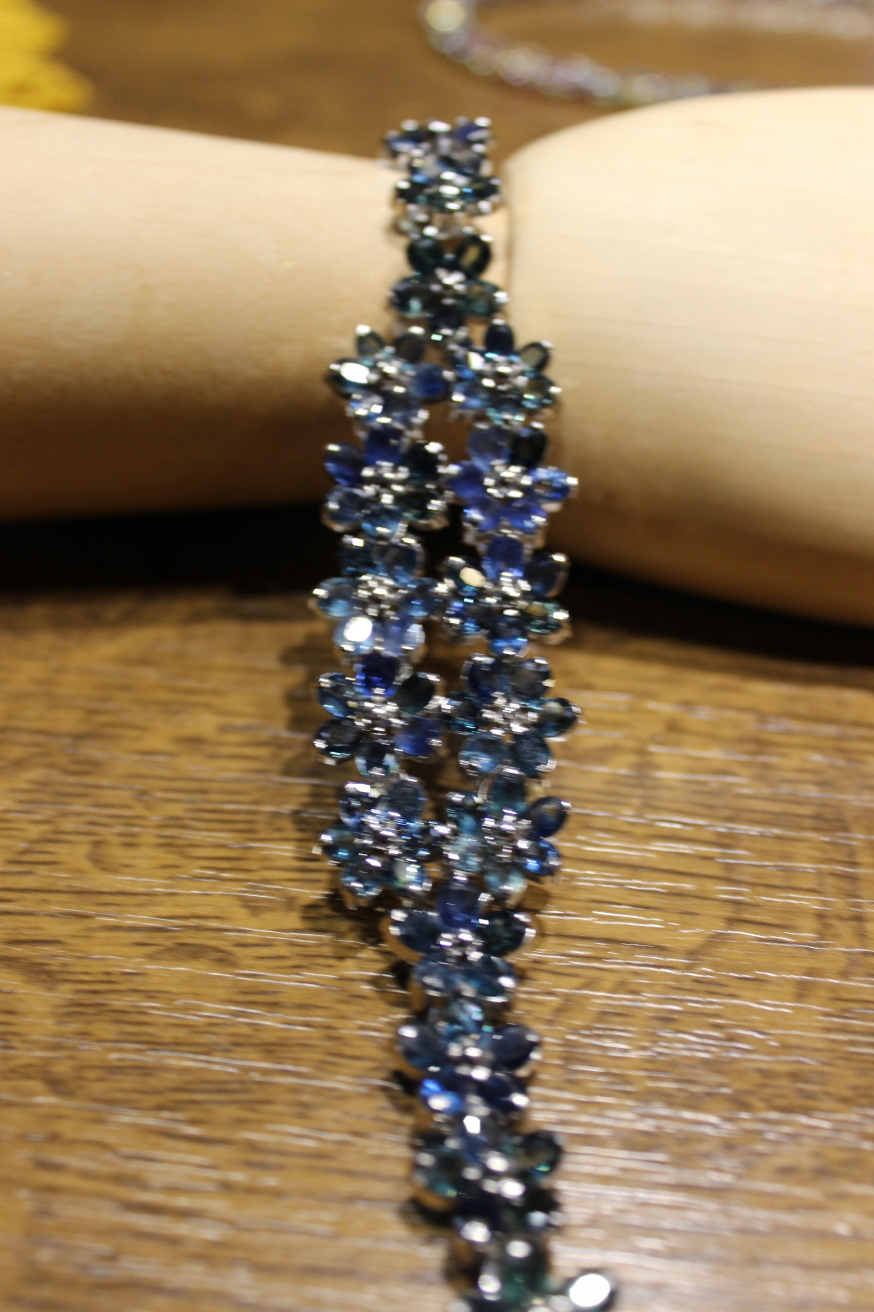 oferujemy nową, pozłacaną białym złotem 14K srebrną - próba 925 bransoletę z naturalnymi szafirami.
