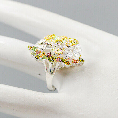 Artystyczny pierścionek iolit r 18 turmaliny kwiat