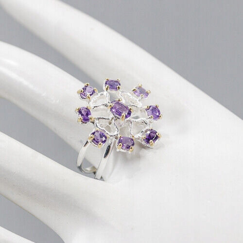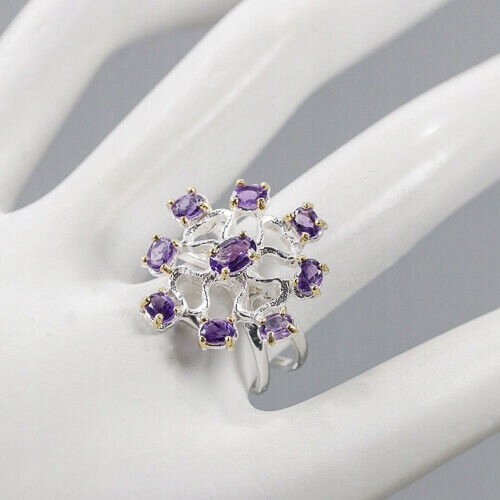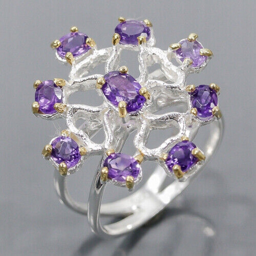 Oferujemy Państwu nowy, pozłacany żółtym i białym złotem, srebrny - próba 925 pierścionek z naturalnymi ametystami.