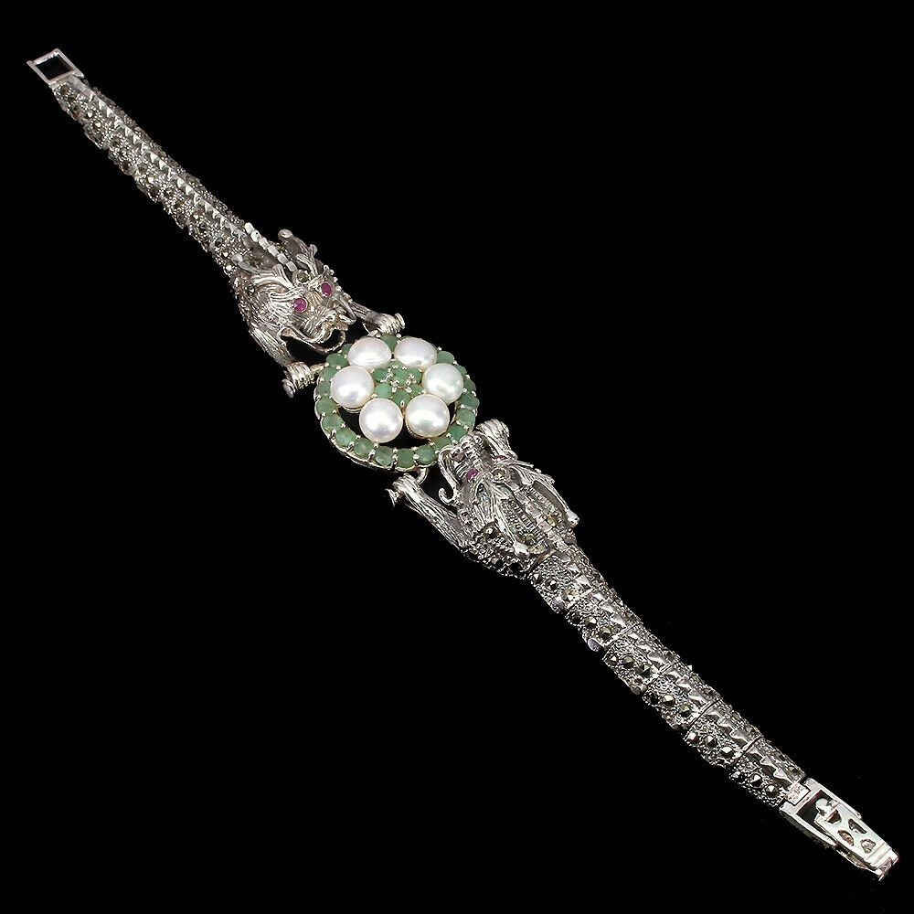 Bransoletka smok naturalne markazyty szmaragdy 925