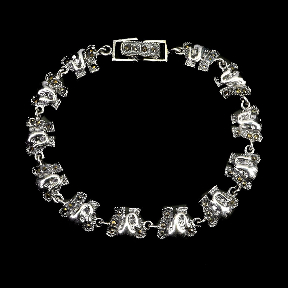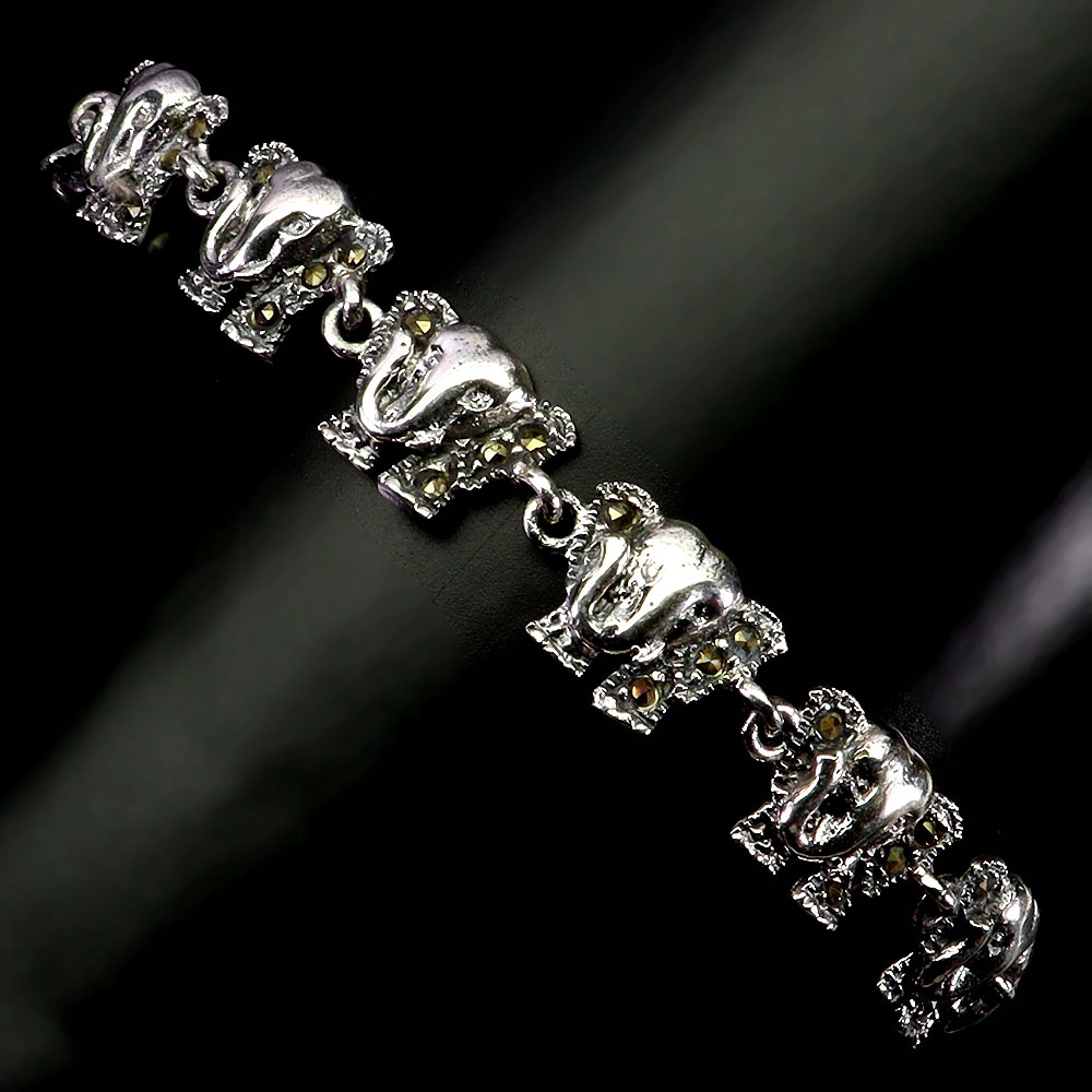 Bransoletka srebrna elegancka naturalne markazyty słonie 925