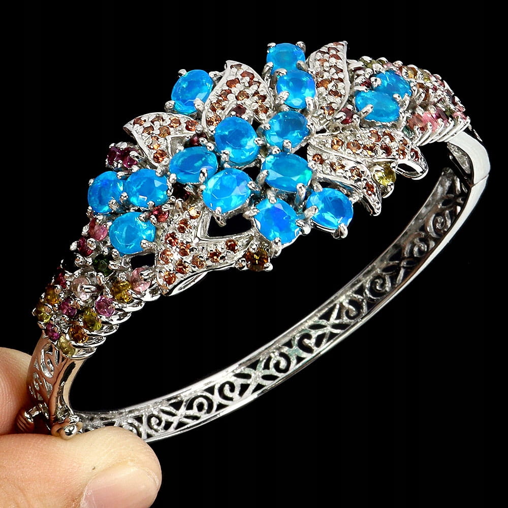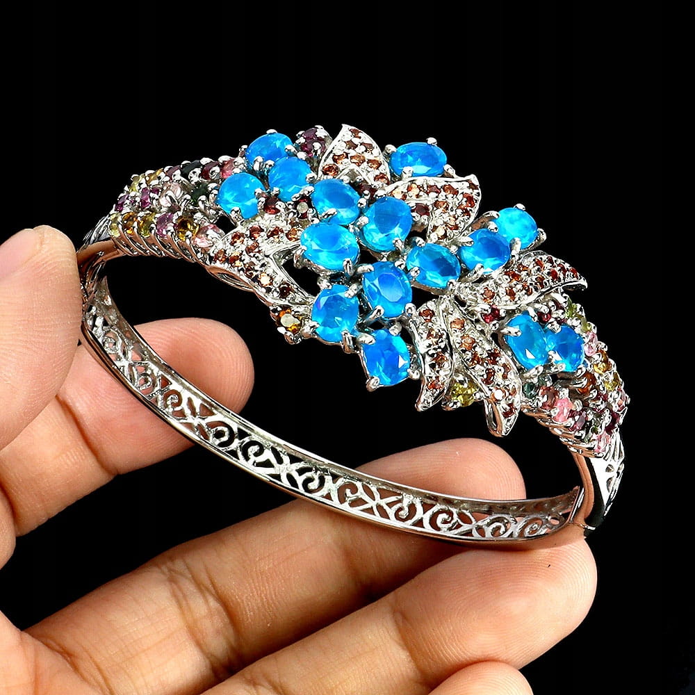 Bransoletka zjawiskowa naturalne niebieskie opale granaty szafiry turmaliny