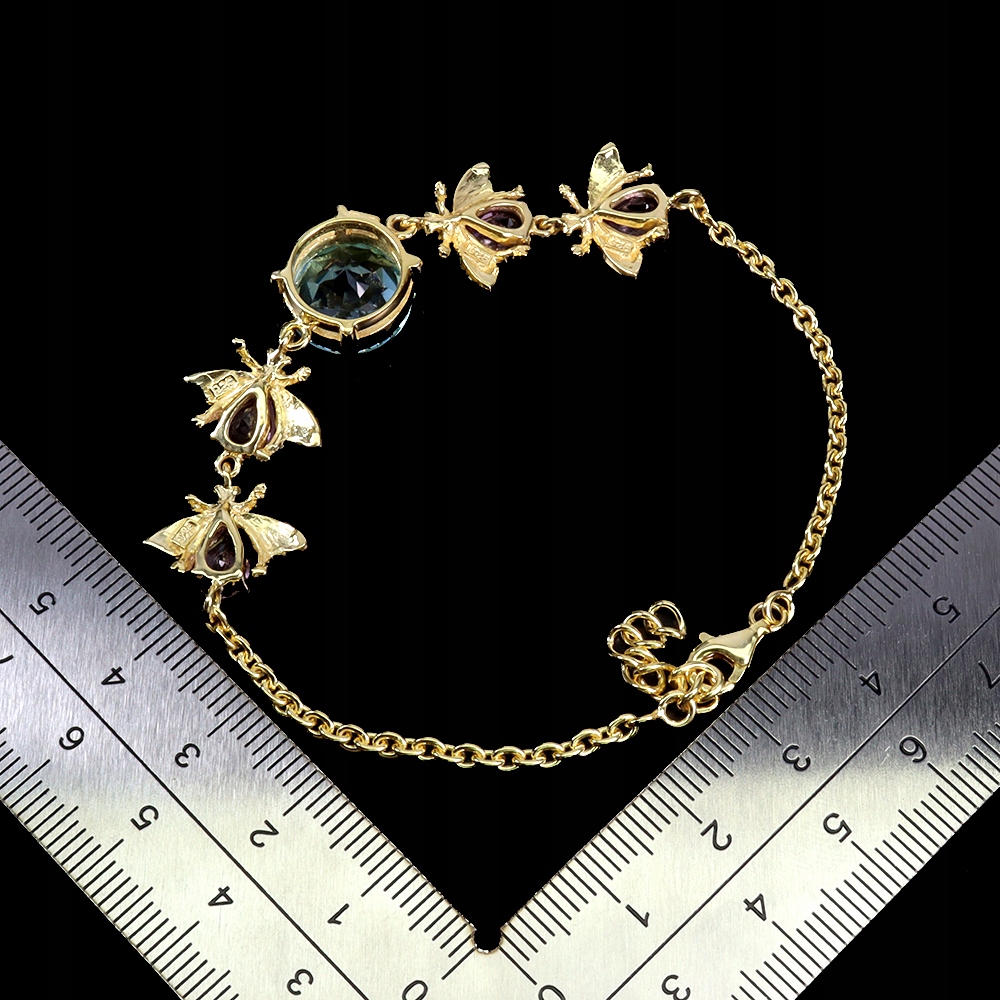 Bransoletka zjawiskowa naturalny topaz sky blue ametysty pszczoła 925