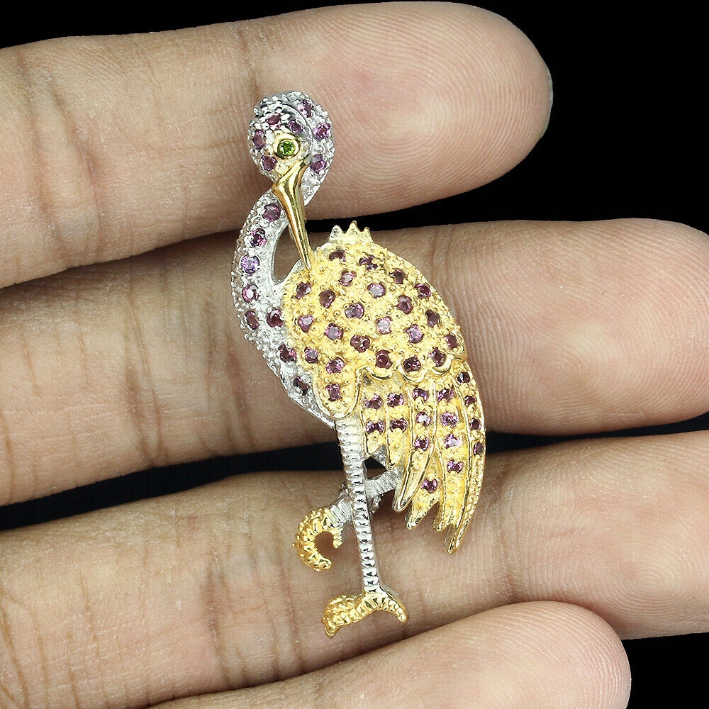 Broszka srebro 925 naturalne granaty ptak