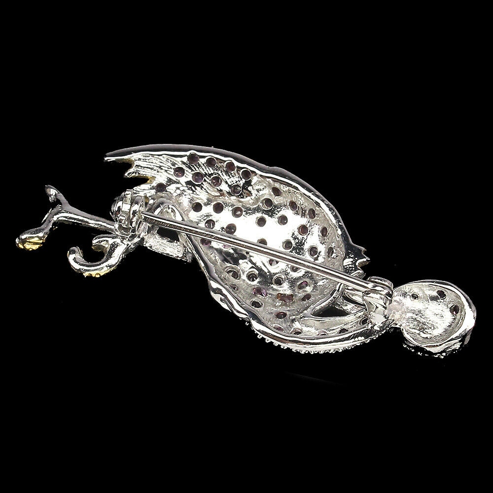 oferujemy Państwu nową, pozłacaną 14K białym i żółtym złotem, srebrną - próba 925 broszkę z naturalnymi granatami (rodolitami) i diopsydem.
